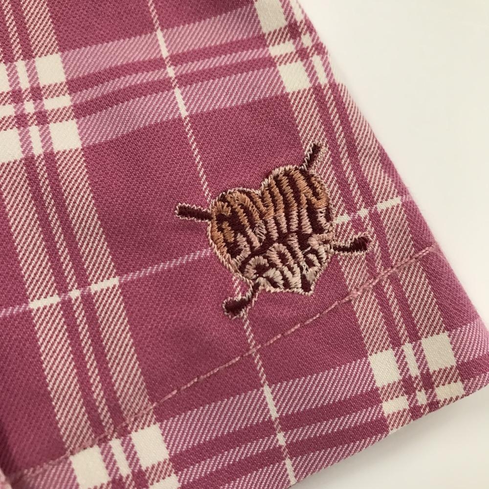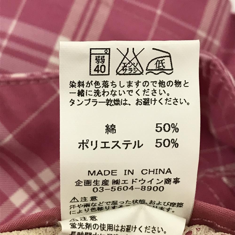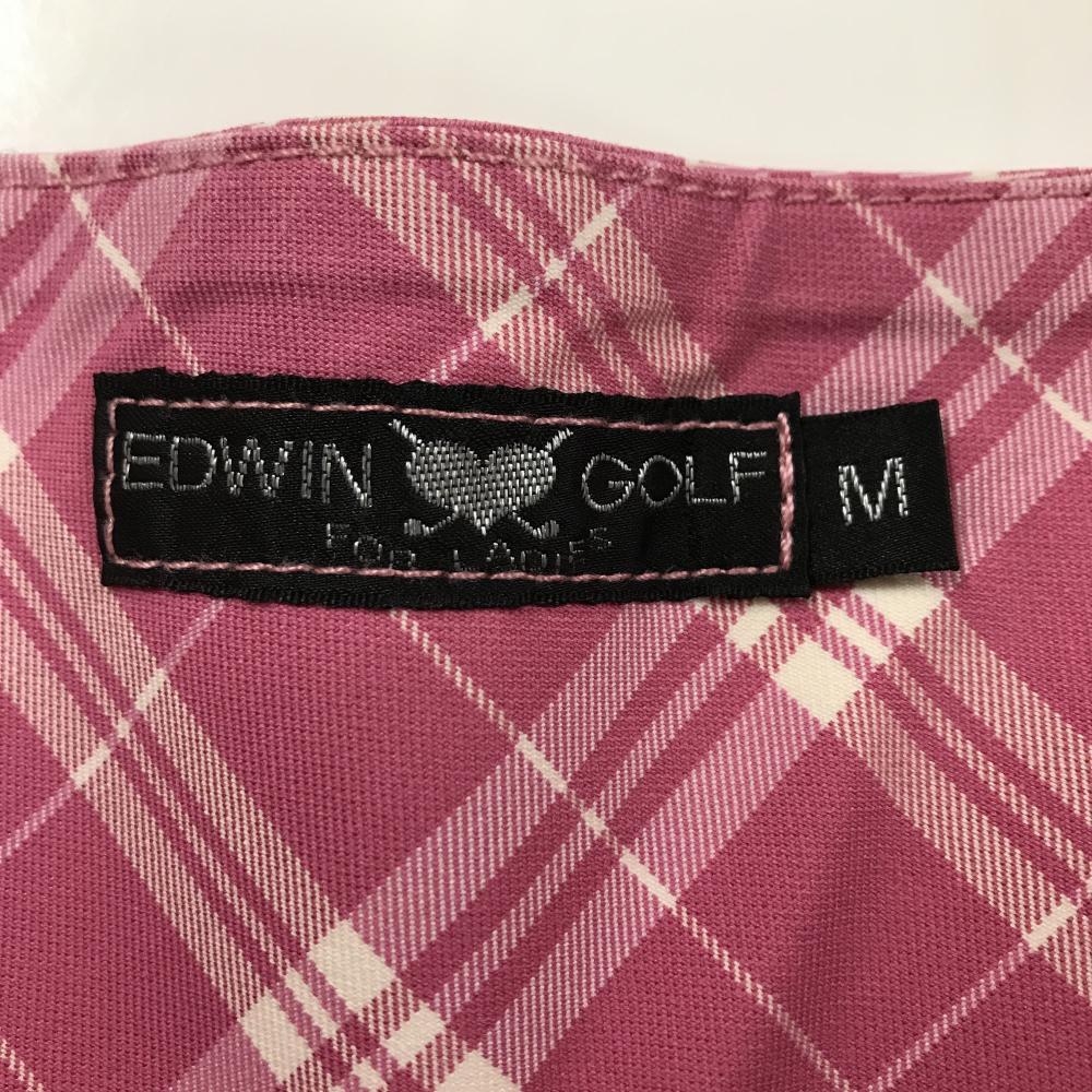 【美品】エドウィンゴルフ プリーツスカート ピンク×白 裾ロゴ レディース M ゴルフウェア EDWIN GOLF
