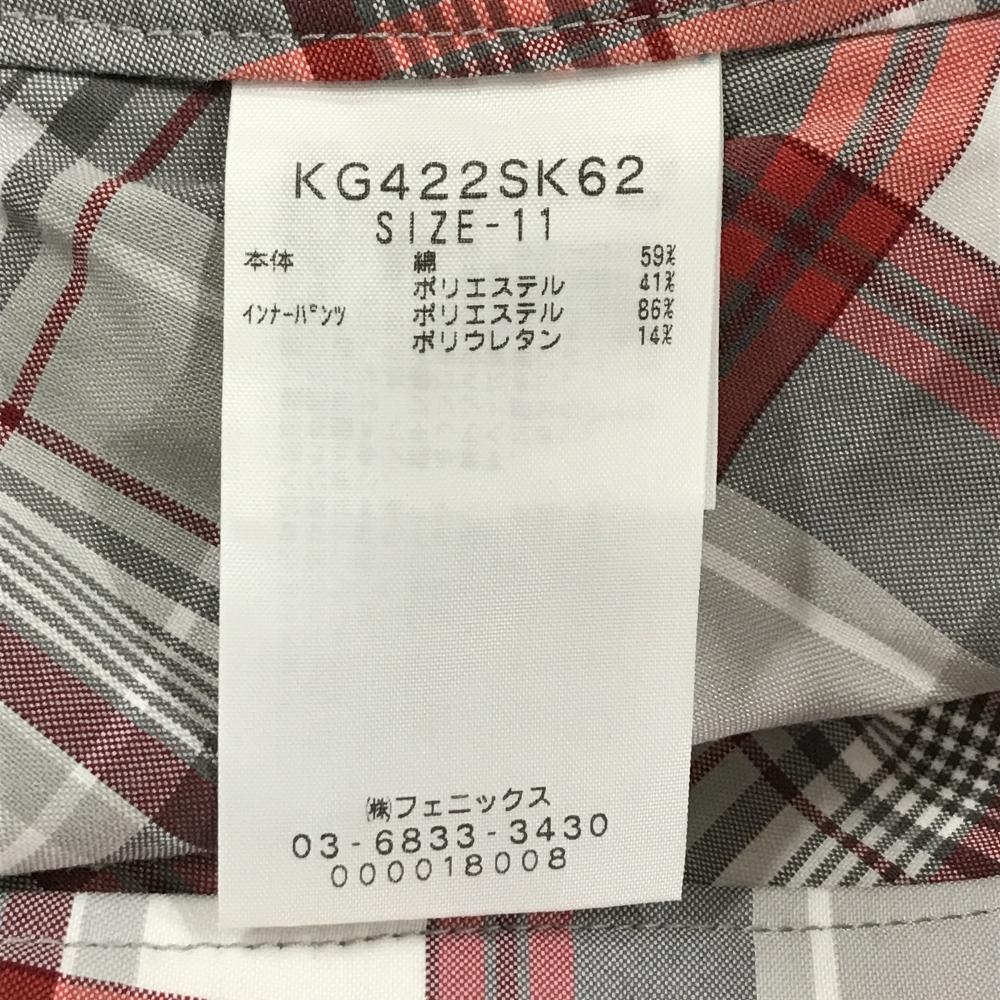 【超美品】カッパ プリーツスカート グレー×レッド チェック柄 ロゴ刺しゅう レディース 11 ゴルフウェア Kappa