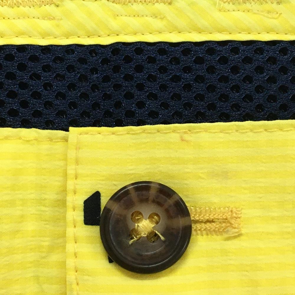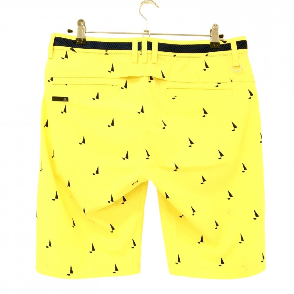 【美品】アディダス ハーフパンツ イエロー×ネイビー 総柄 サッカー生地 メンズ O/XG ゴルフウェア adidas