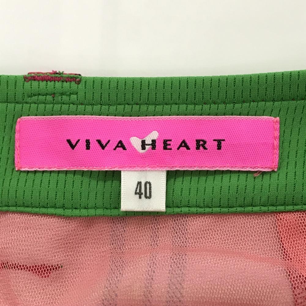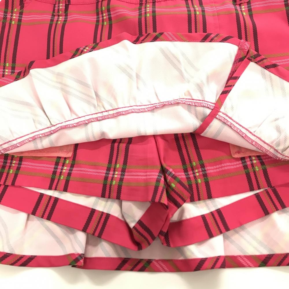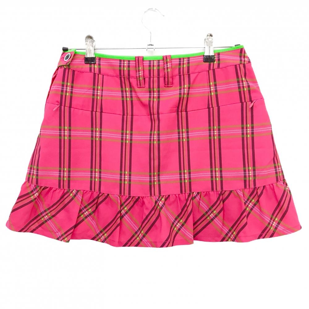【超美品】ビバハート スカート ピンク×ライトグリーン チェック柄 裾フリル レディース 40(M) ゴルフウェア VIVA HEART