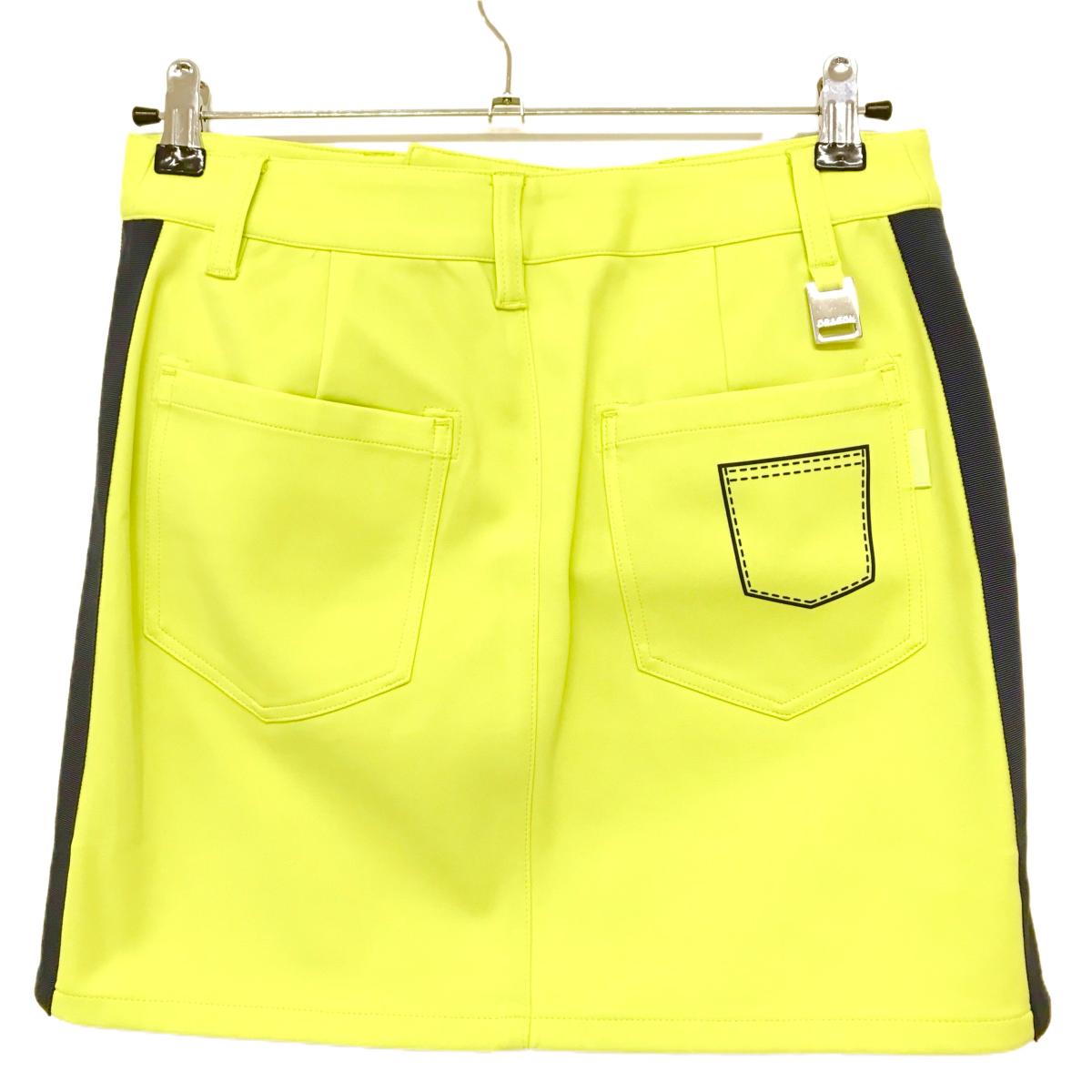 【超美品】ダンスウィズドラゴン スカート イエロー×黒 ダミーポケット ラインストーン レディース 2(M) ゴルフウェア Dance With Dragon