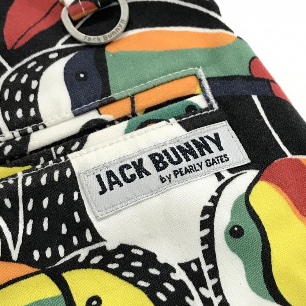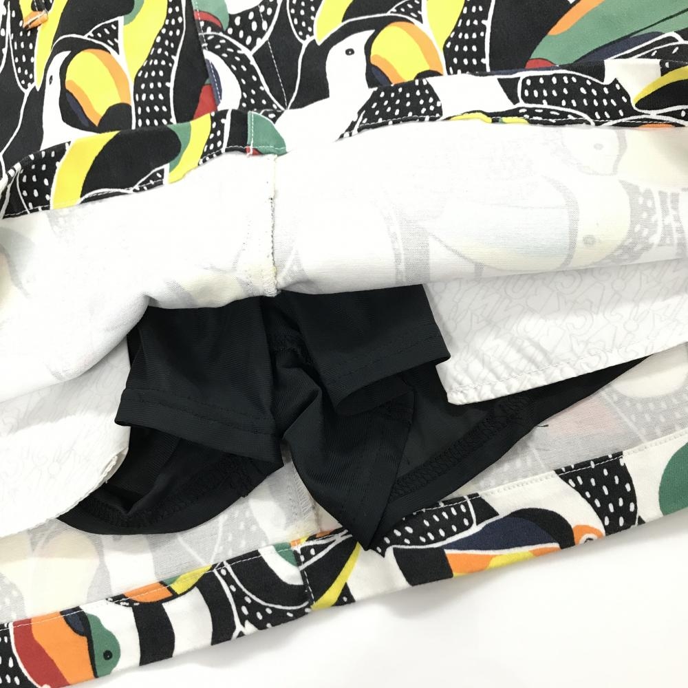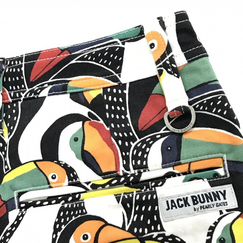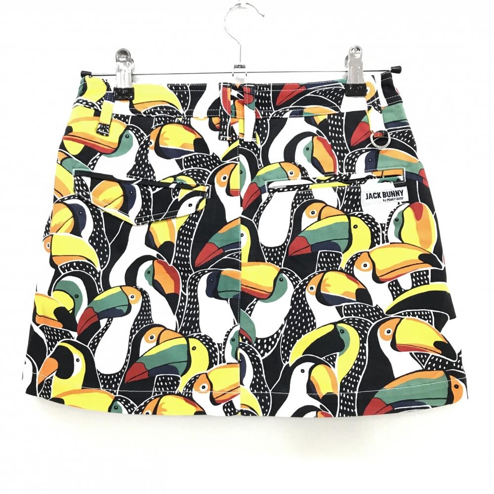 【美品】ジャックバニー スカート 白×マルチカラー 鳥総柄 ストレッチ レディース 0(S) ゴルフウェア Jack Bunny