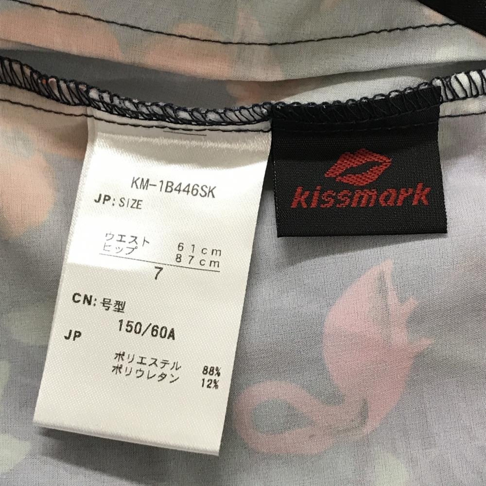 【超美品】キスマーク スカート レッド×ライトグリーン ハイビスカス・リーフ柄 ストレッチ レディース 7 ゴルフウェア KISS MARK