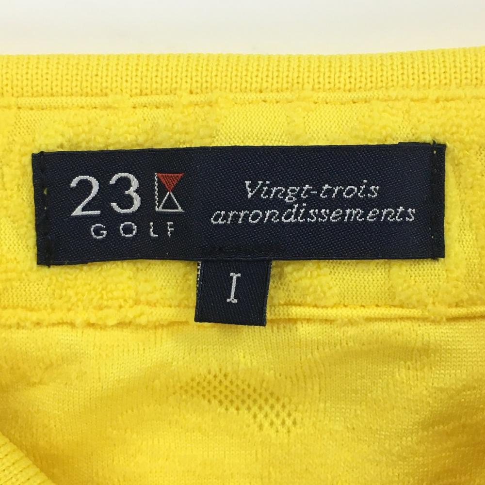 【超美品】23区ゴルフ 半袖ポロシャツ イエロー 花柄織生地 ロゴワッペン レディース I(M) ゴルフウェア 23区