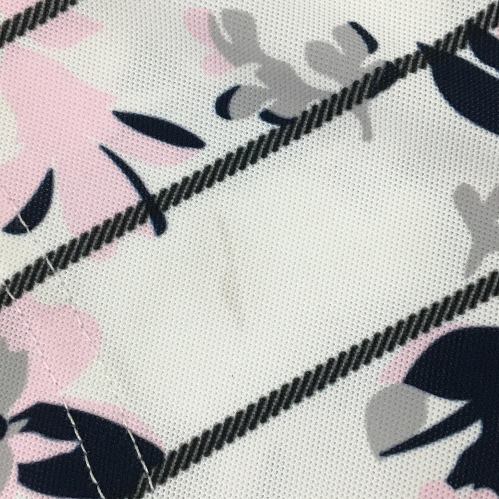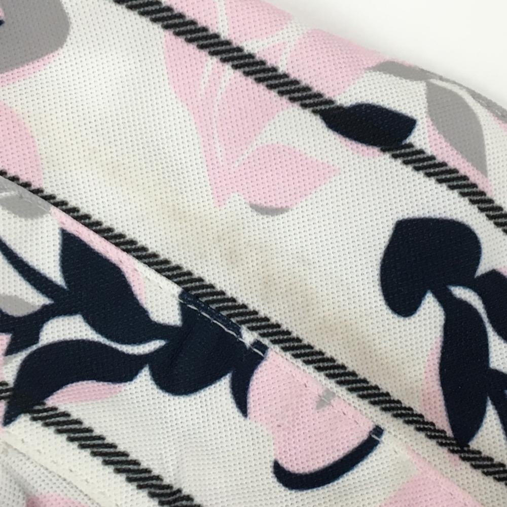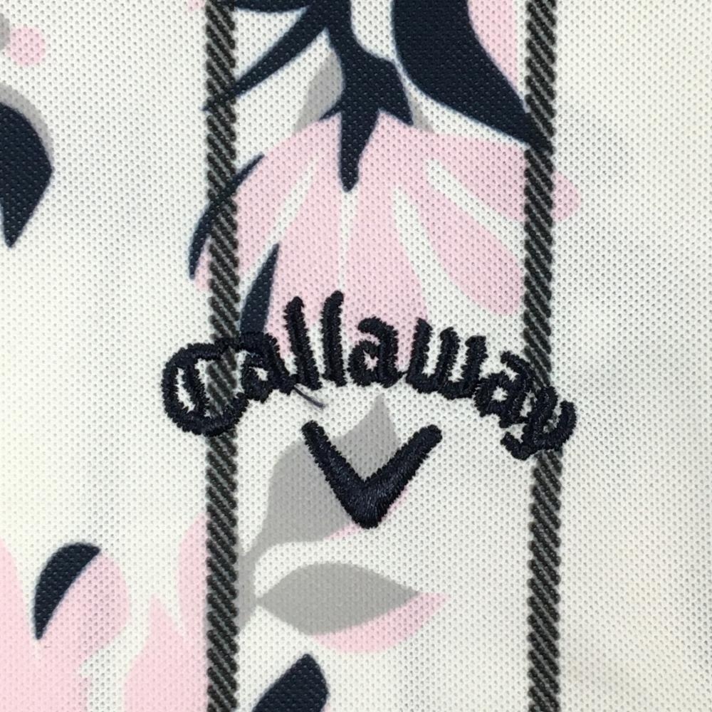 キャロウェイ 半袖ポロシャツ 白×ライトピンク×ネイビー 花柄 ストライプ レディース LL ゴルフウェア Callaway