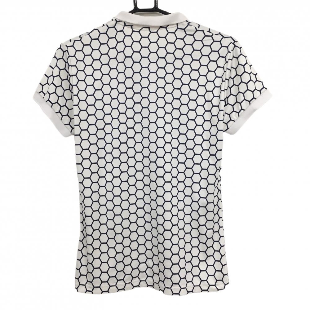 デサントゴルフ 半袖ポロシャツ 白×ネイビー ヘキサゴン柄 中田英寿 レディース M ゴルフウェア DESCENTE
