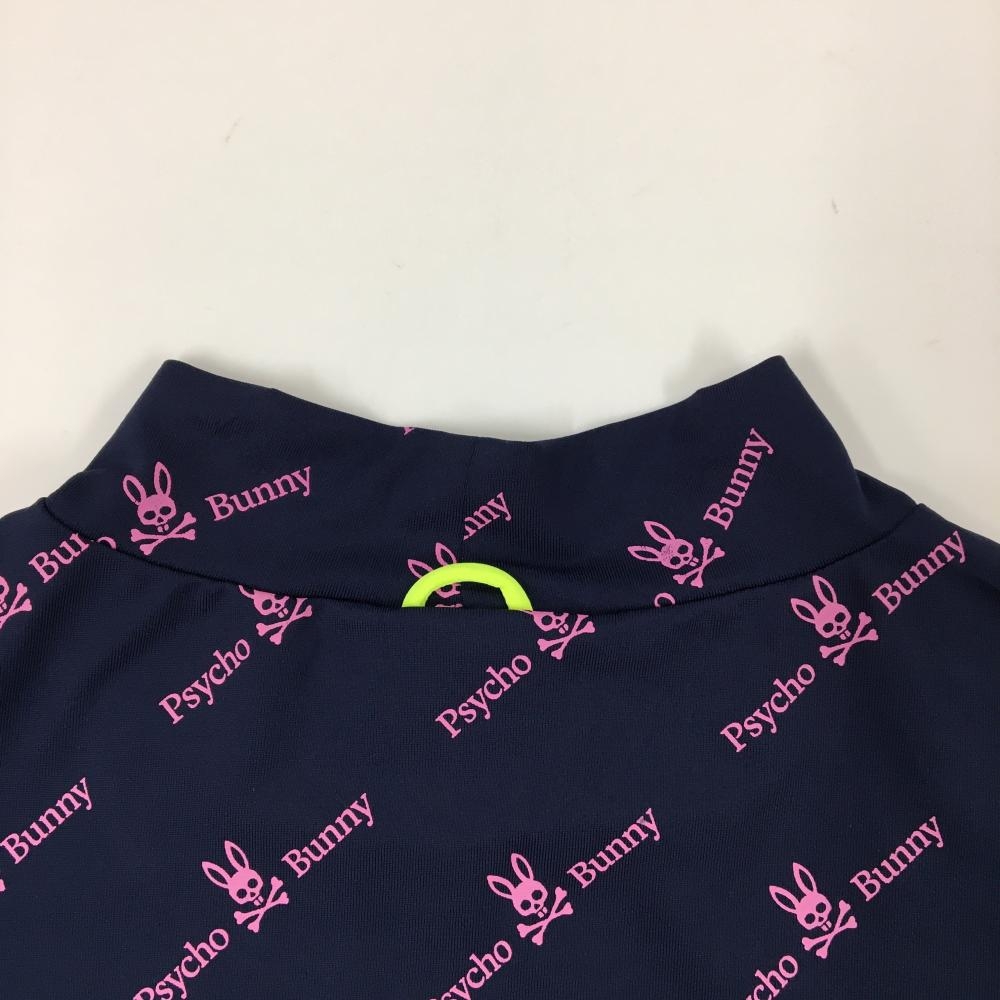 【超美品】サイコバニー 半袖ハイネックシャツ ネイビー×ピンク ロゴ総柄 メンズ XL ゴルフウェア Psycho Bunny