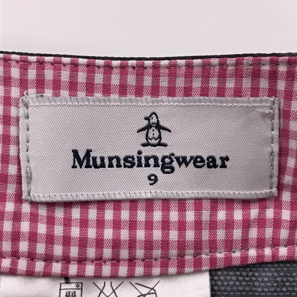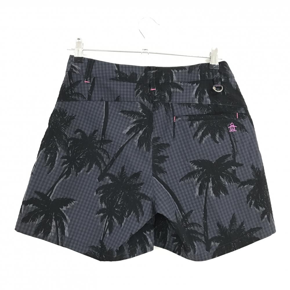 【超美品】マンシングウェア キュロットスカート グレー×黒 ヤシの木総柄 チェック レディース 9 ゴルフウェア Munsingwear