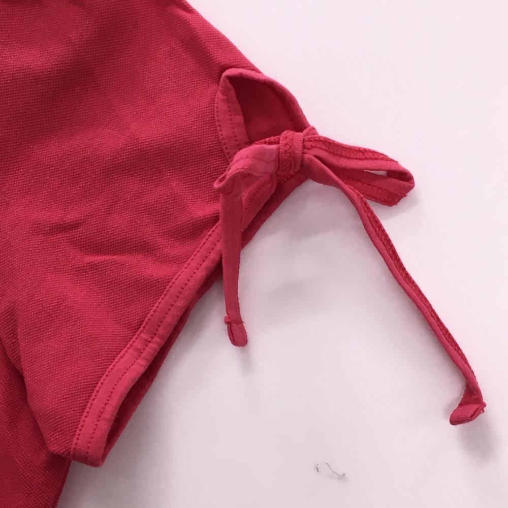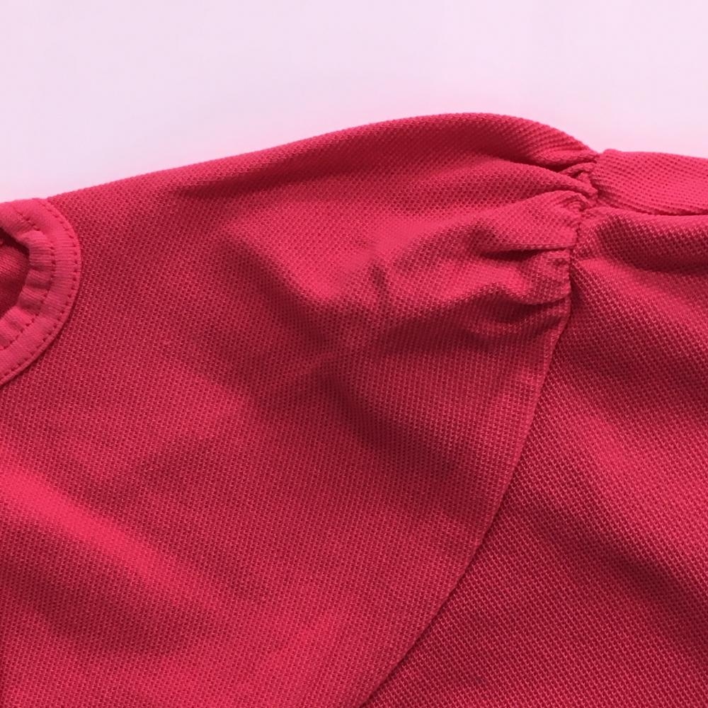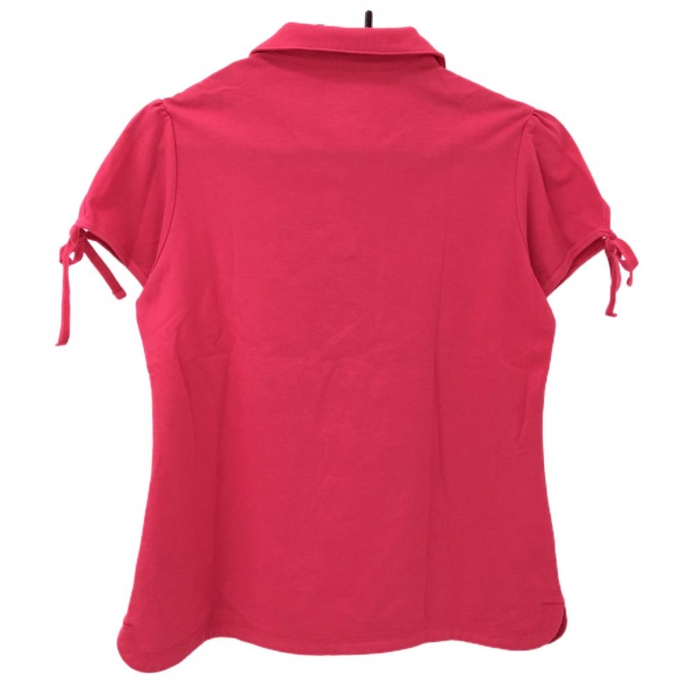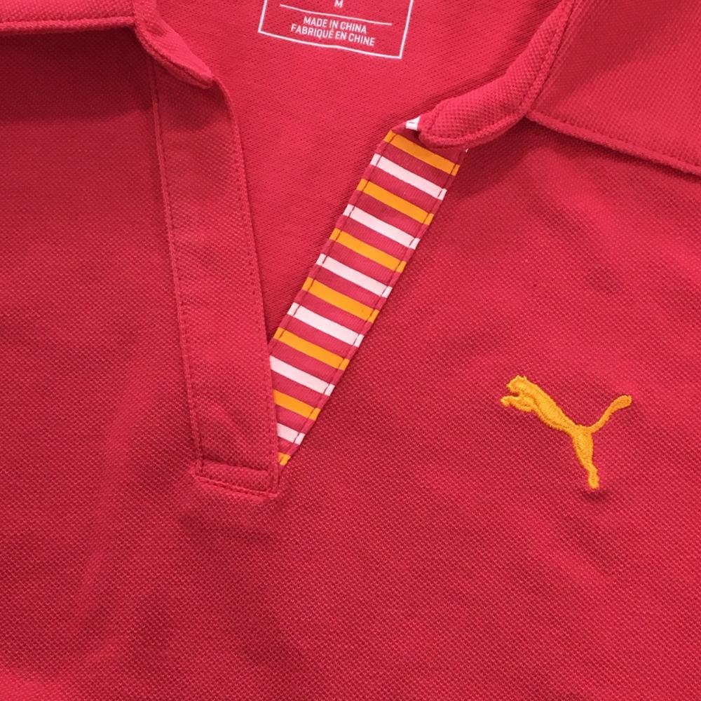 【美品】プーマ 半袖スキッパーシャツ ピンク ロゴ刺しゅう 前立てボーダー 袖口リボン レディース M ゴルフウェア PUMA