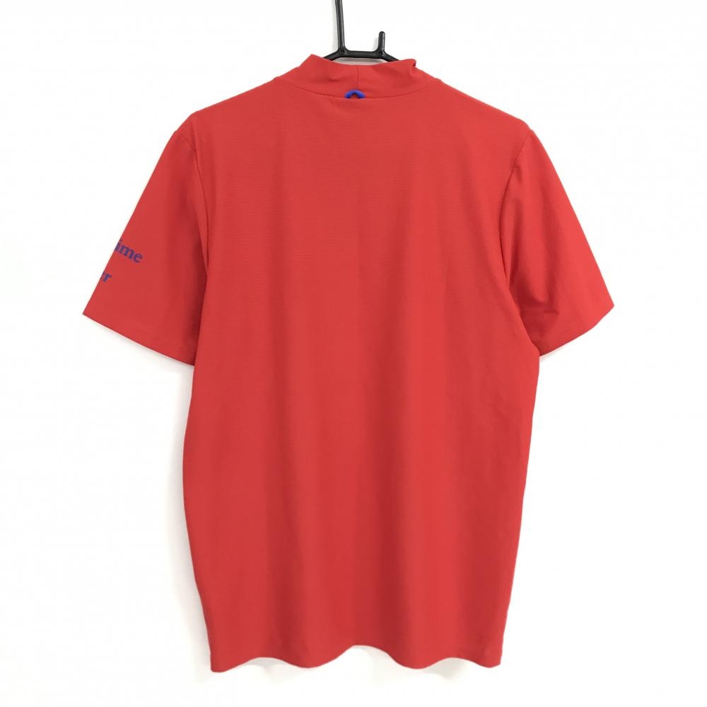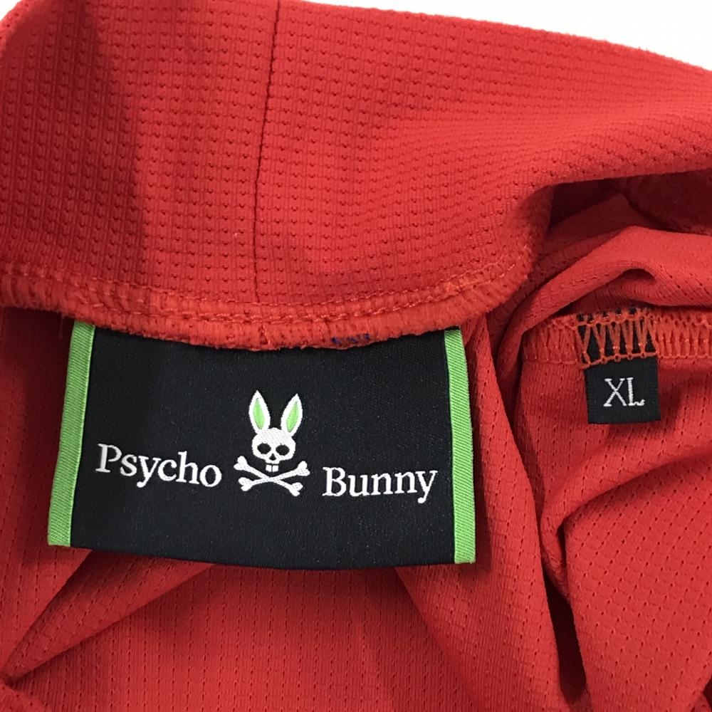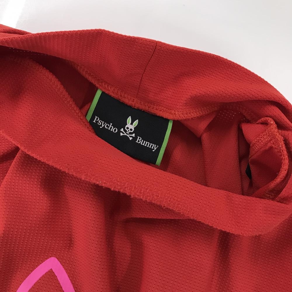 【美品】サイコバニー 半袖ハイネックシャツ レッド 蛍光ロゴ メンズ XL ゴルフウェア Psycho Bunny