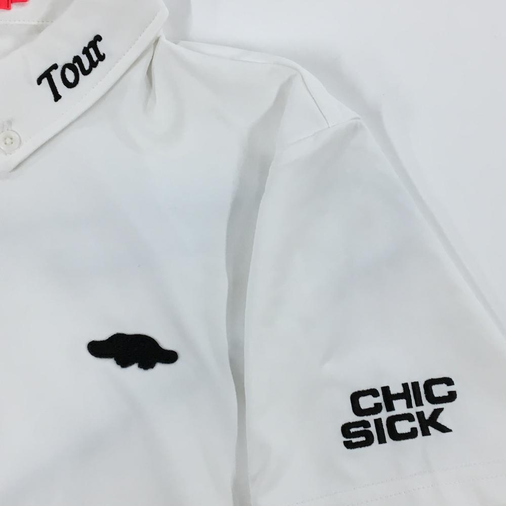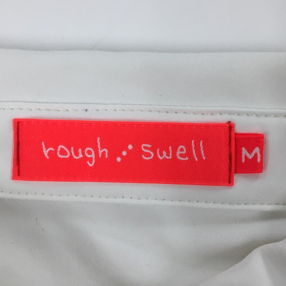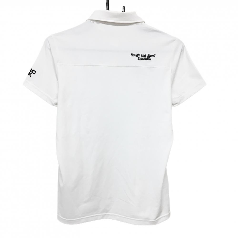 【美品】ラフアンドスウェル 半袖ポロシャツ 白 ロゴ刺しゅう黒 ボタンダウン レディース M ゴルフウェア rough&swell