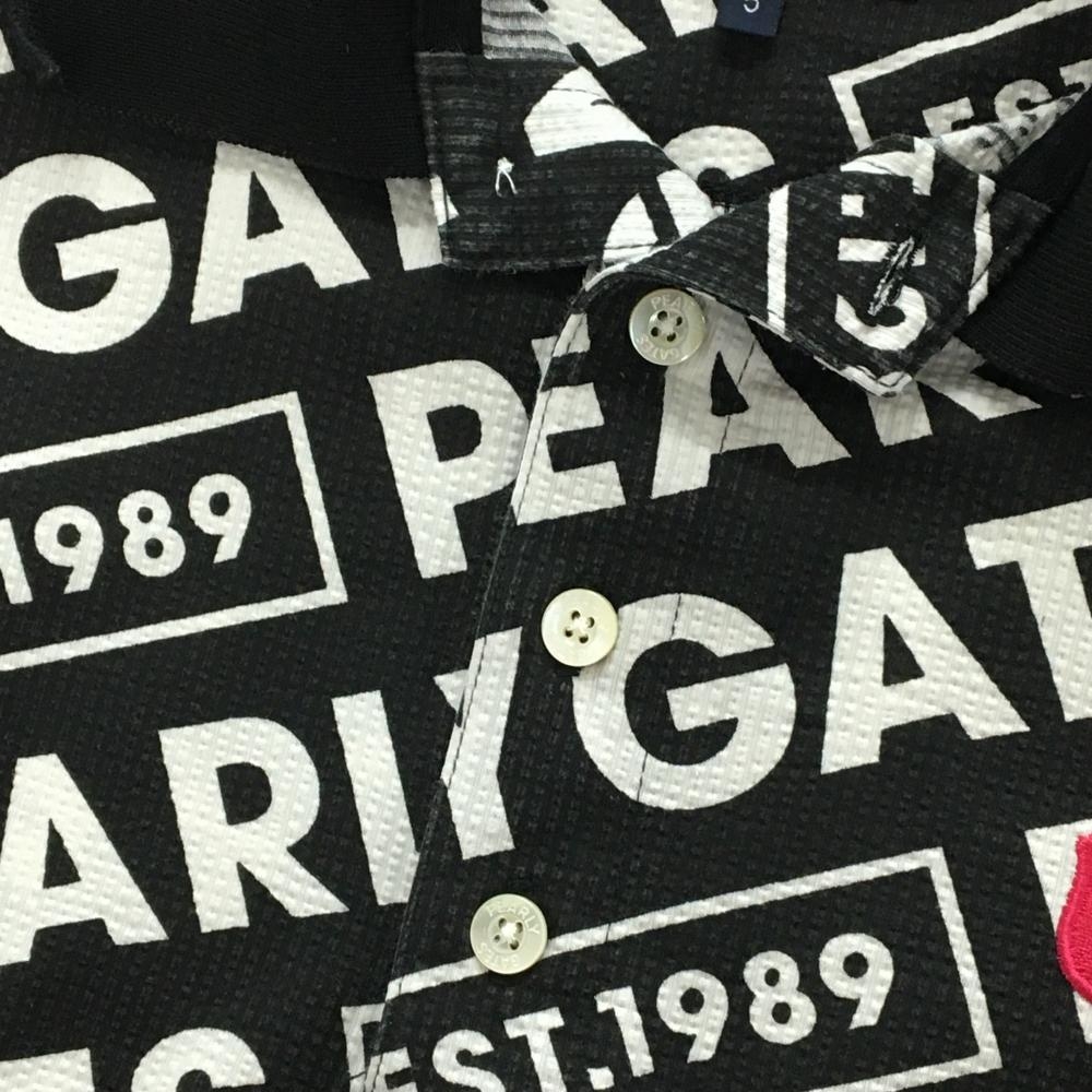パーリーゲイツ 半袖ポロシャツ 黒系×白 斜めロゴ総柄 メンズ 5(L) ゴルフウェア PEARLY GATES