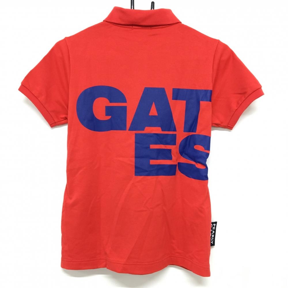 【超美品】パーリーゲイツ 半袖ポロシャツ レッド×ネイビー ビックプリント レディース 0(S) ゴルフウェア PEARLY GATES