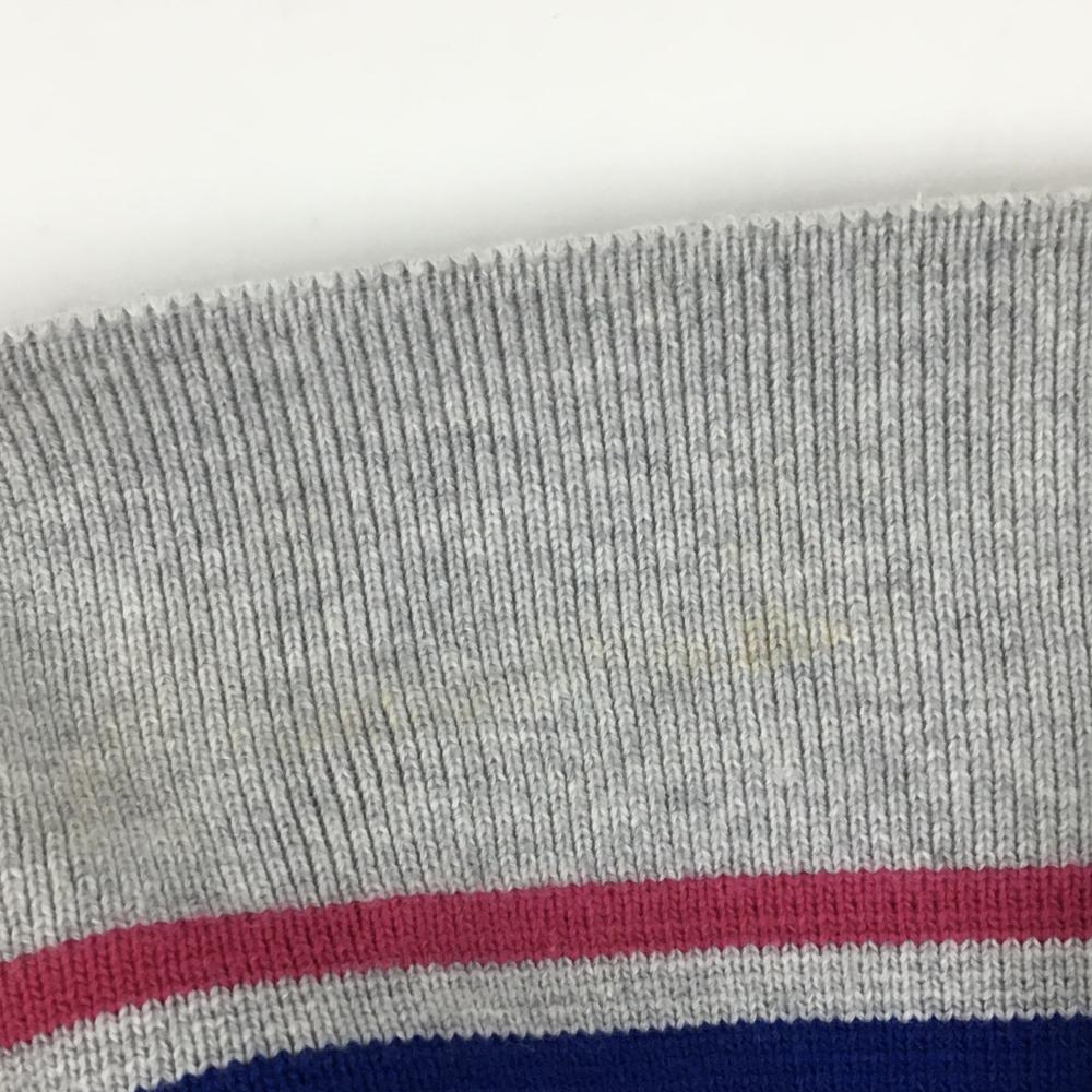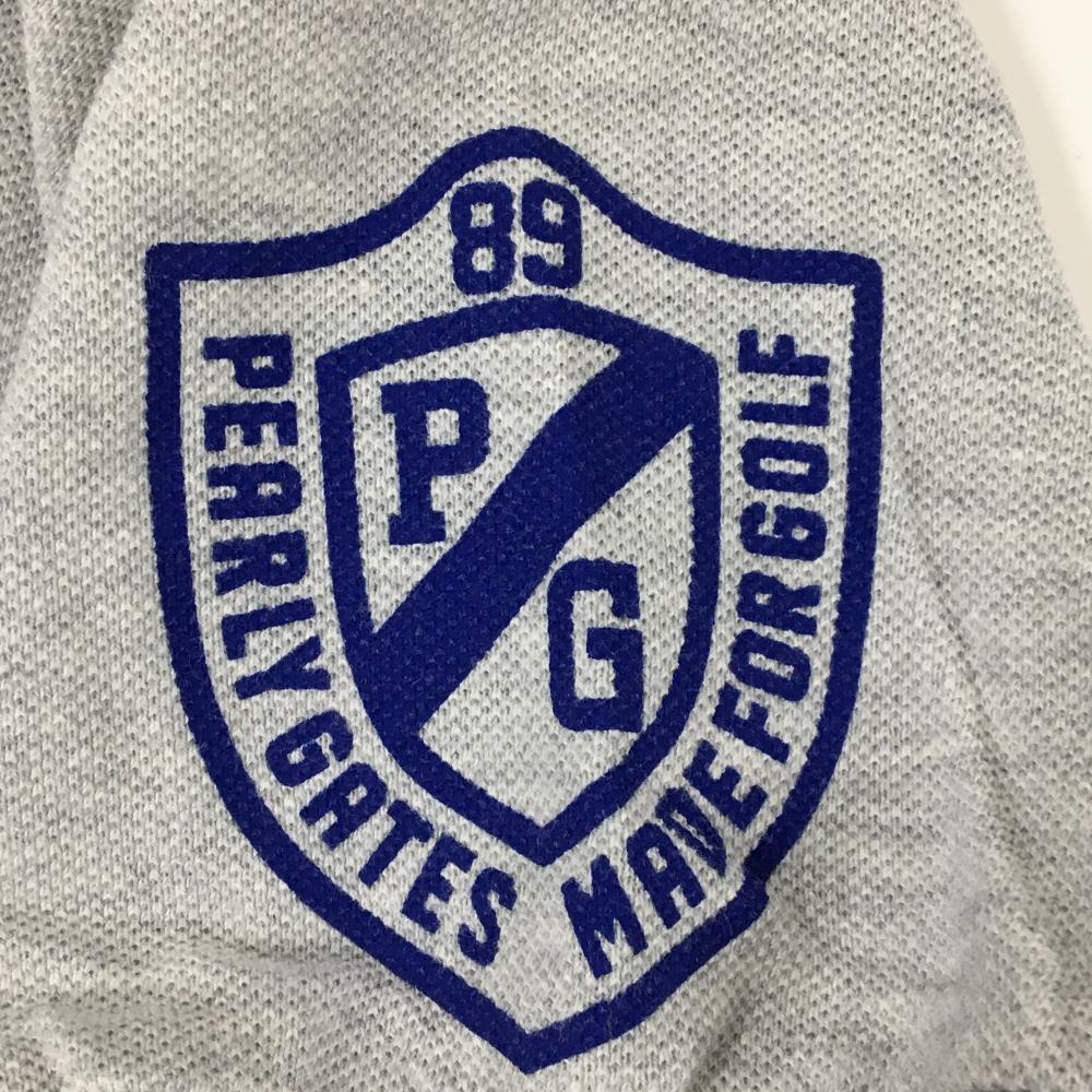 【美品】パーリーゲイツ 半袖ポロシャツ グレー×ブルー 袖ロゴプリント ニコちゃん スマイル レディース 0(S) ゴルフウェア PEARLY GATES