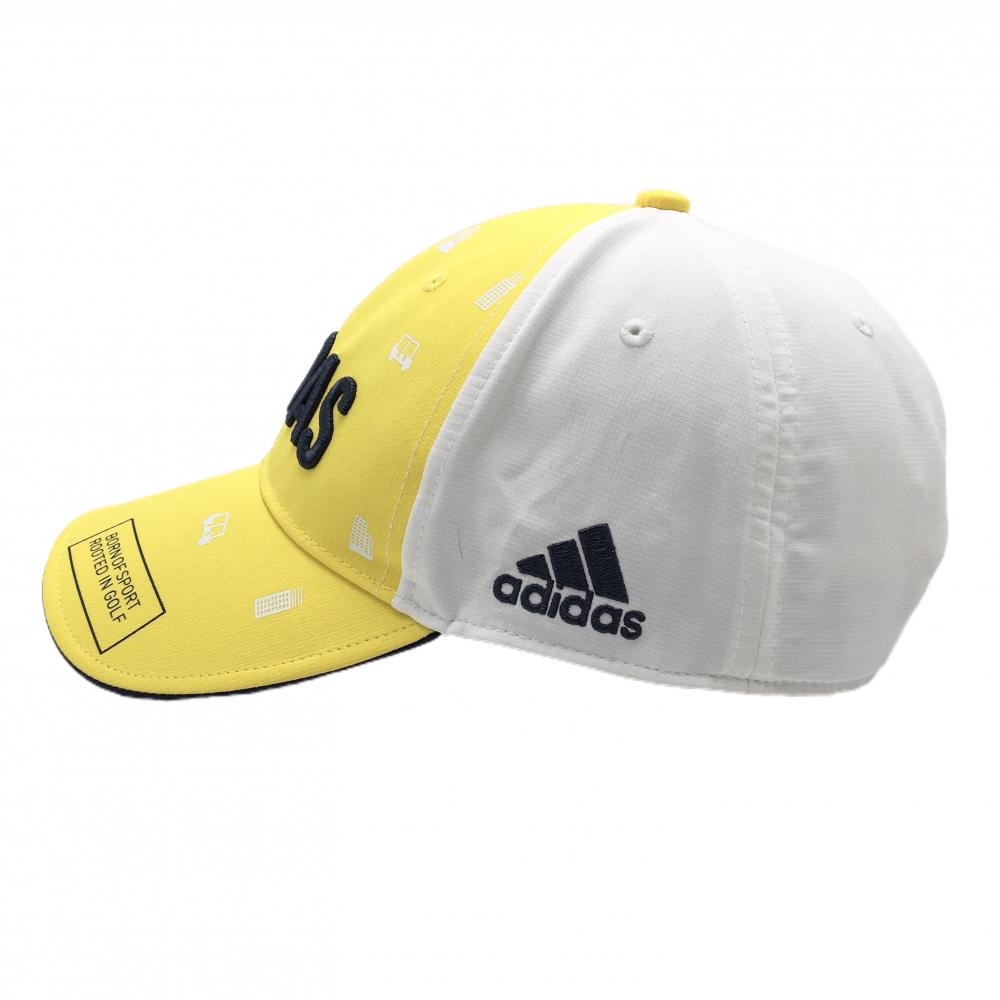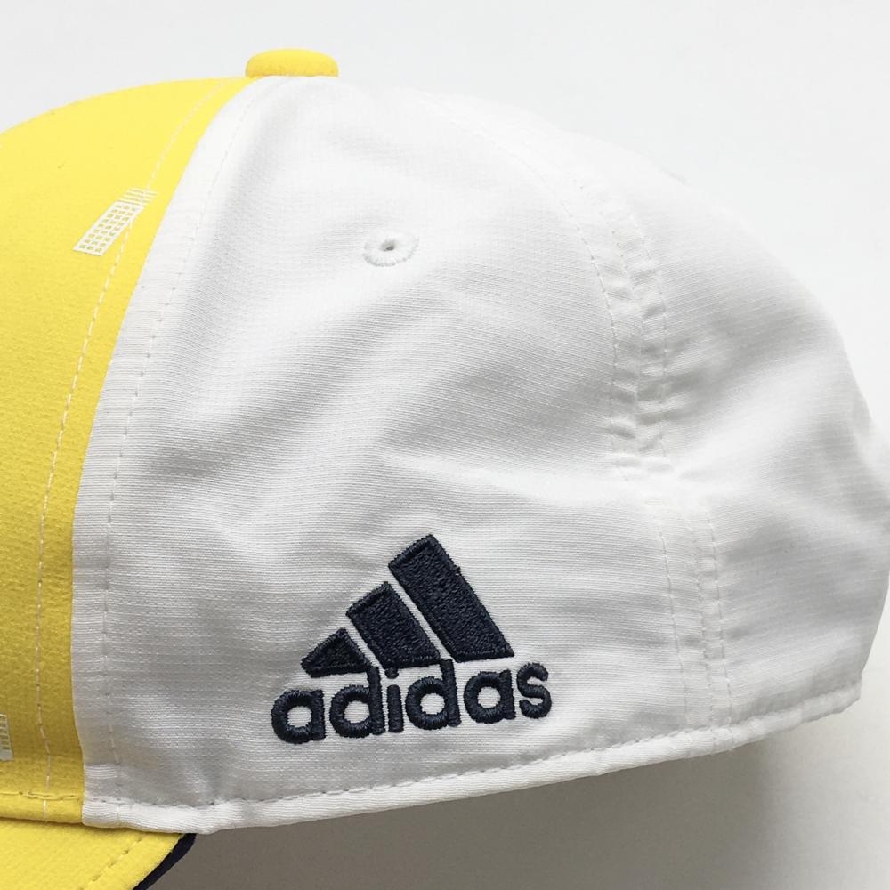 【美品】アディダス キャップ イエロー×白 フロント柄 立体ロゴ フリー(57-59cm) ゴルフウェア adidas