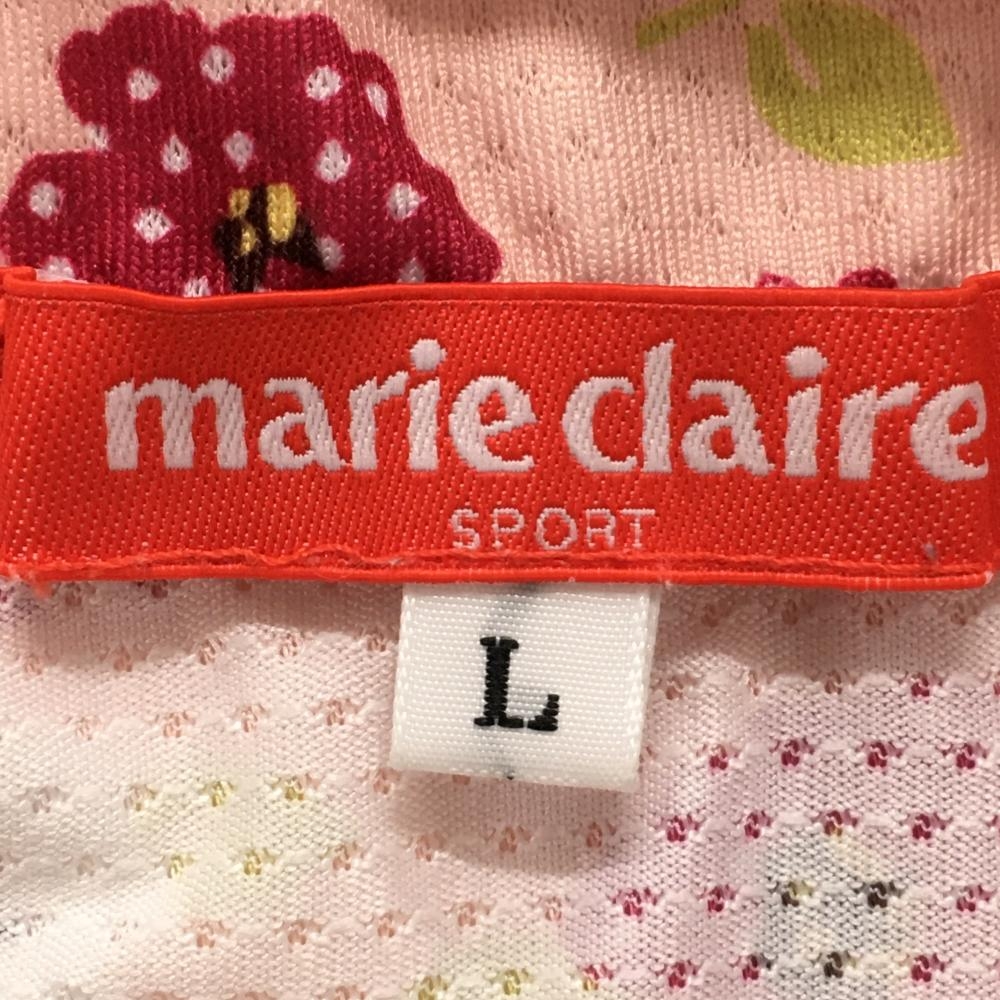 【超美品】マリクレールスポール 長袖ハイネックシャツ ピンク×白 花柄 ハーフジップ レディース L ゴルフウェア marie claire