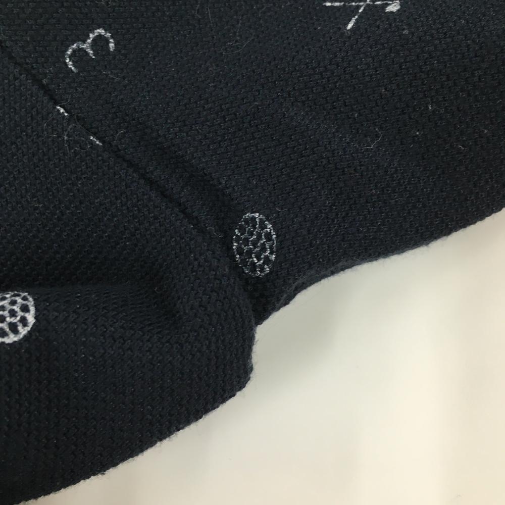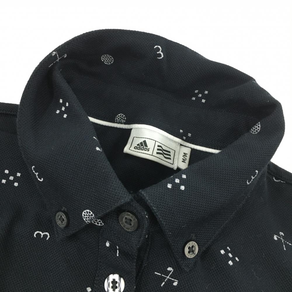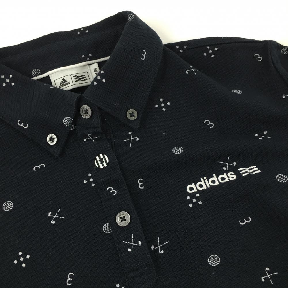 【美品】アディダス 長袖ポロシャツ ネイビー×白 総柄 ロゴ刺しゅう ボタンダウン レディース M/M ゴルフウェア adidas