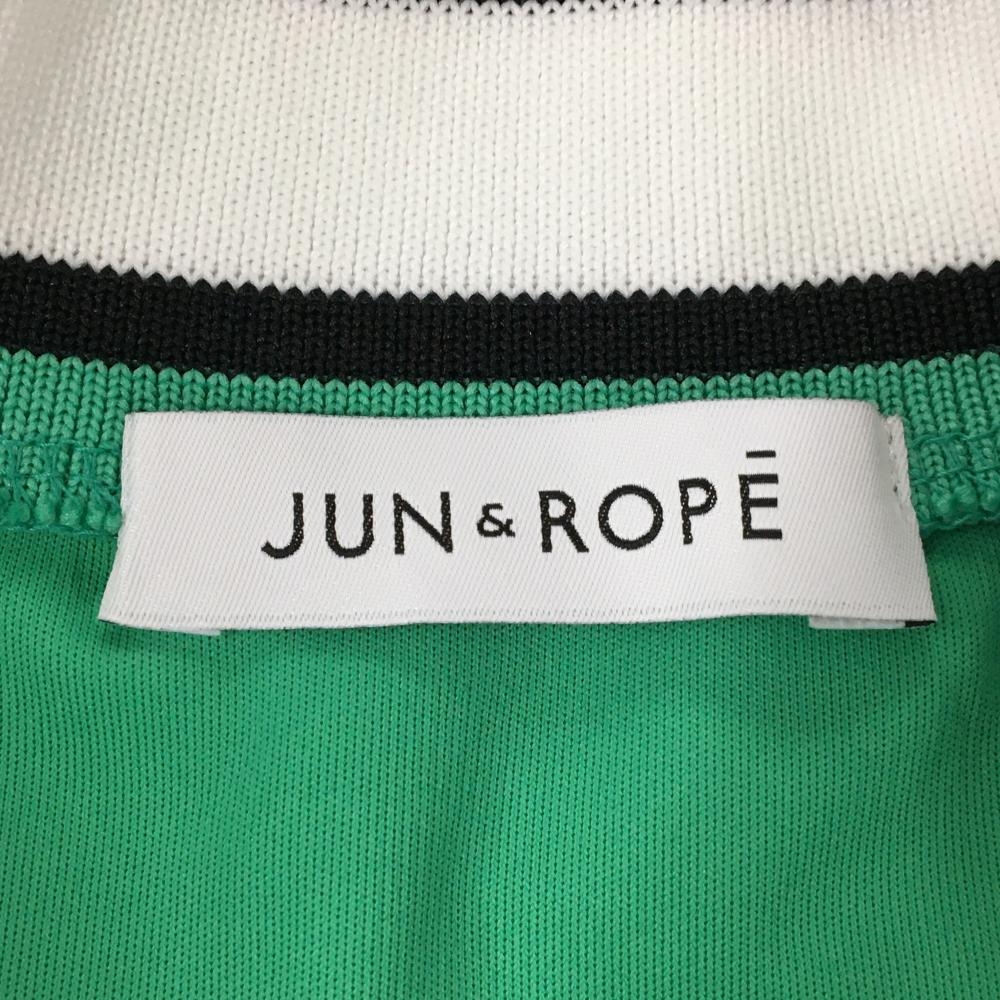 【超美品】ジュンアンドロペ 半袖ハイネックシャツ グリーン×白 ネックライン バックプリント レディース L ゴルフウェア JUN&ROPE