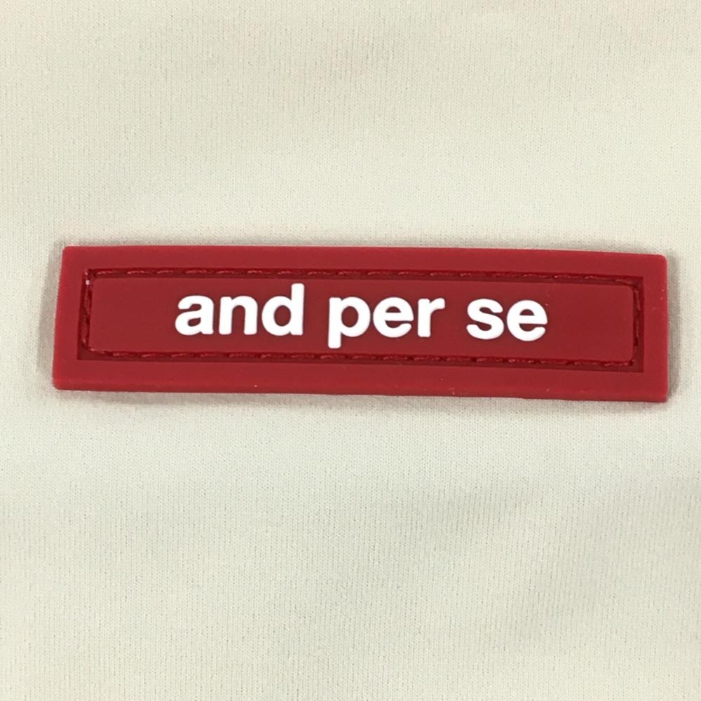 【超美品】アンパスィ 半袖ハイネックシャツ ベージュ×ネイビー レディース M ゴルフウェア and per se
