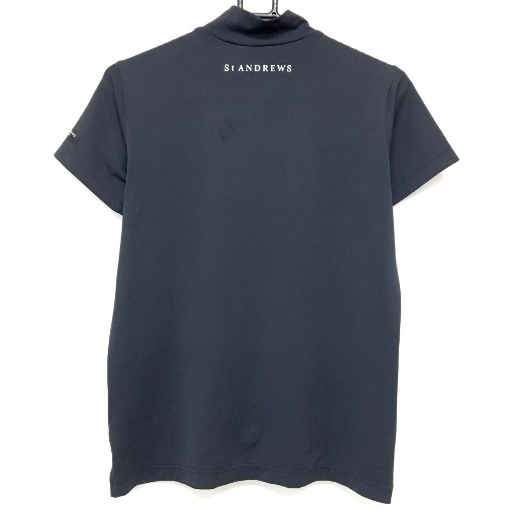 【超美品】セントアンドリュース 半袖ハイネックシャツ 黒×白 フロントロゴ レディース M ゴルフウェア St ANDREWS