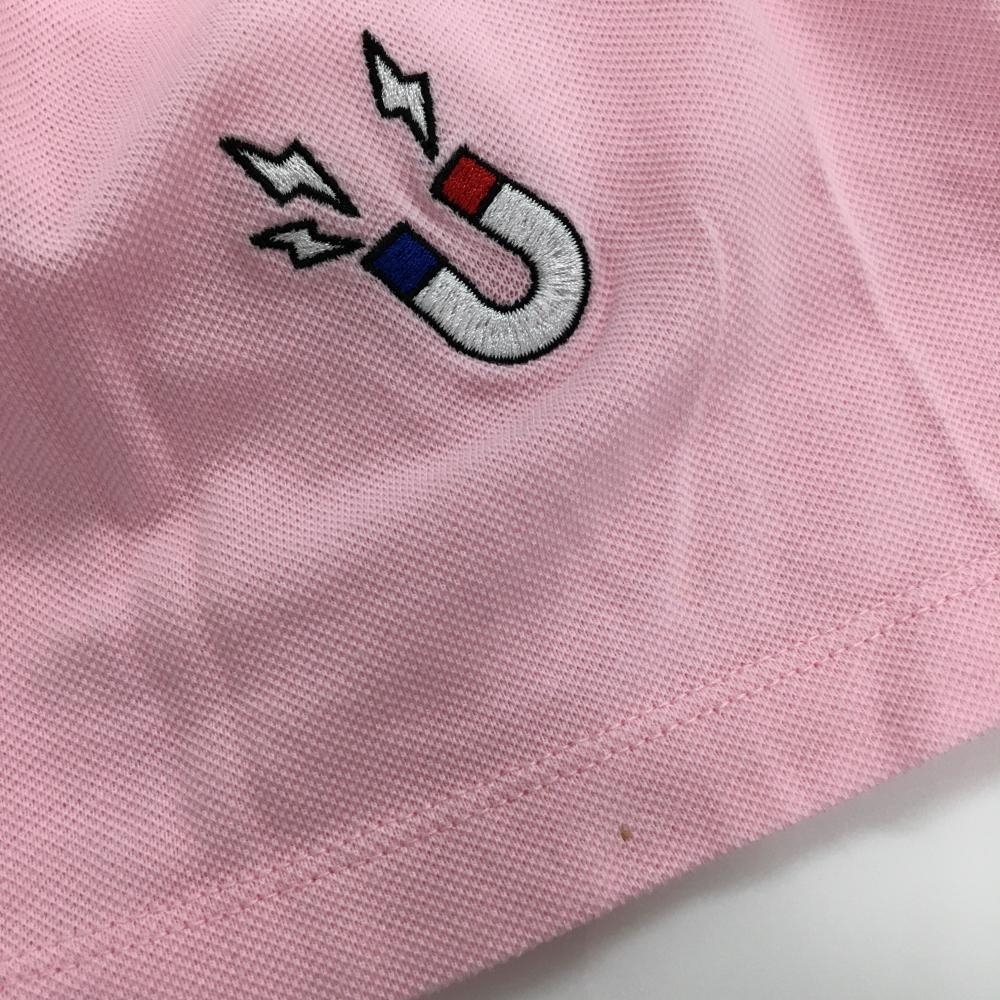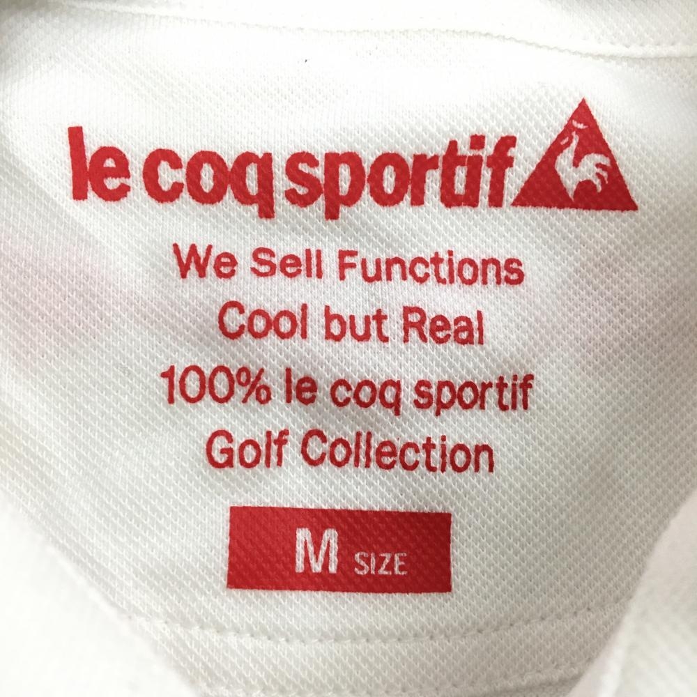 【美品】ルコックゴルフ 半袖ポロシャツ ピンク×白 一部ボーダー ロゴレッド 毛羽立ち小 レディース M ゴルフウェア le coq sportif