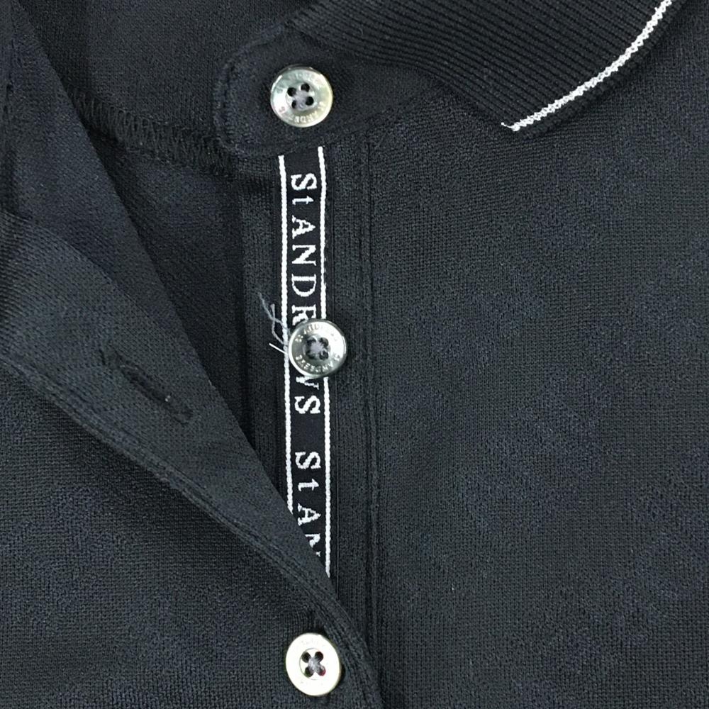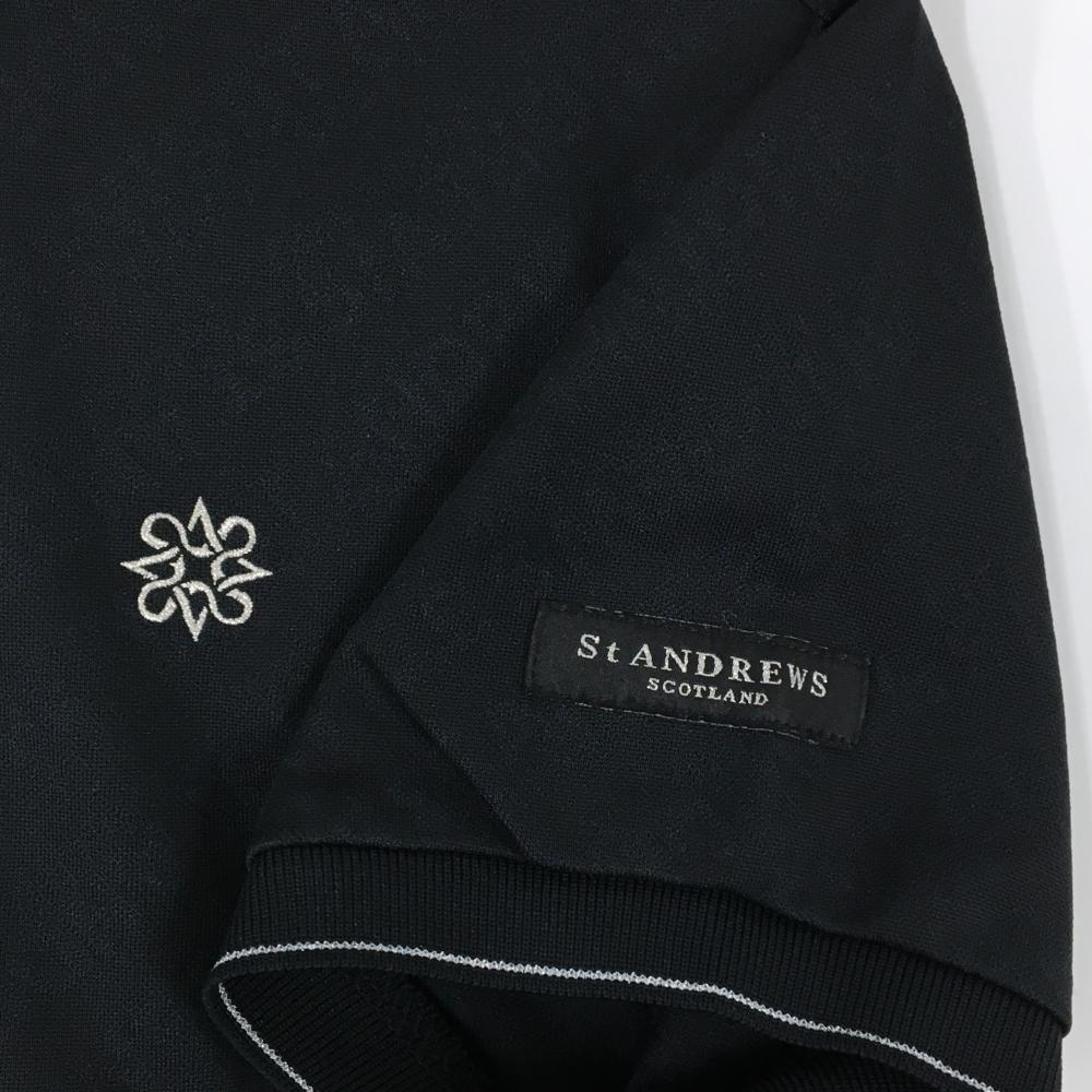 【超美品】セントアンドリュース 半袖ポロシャツ 黒×シルバー ロゴ地模様 襟・袖口ライン レディース M ゴルフウェア St ANDREWS