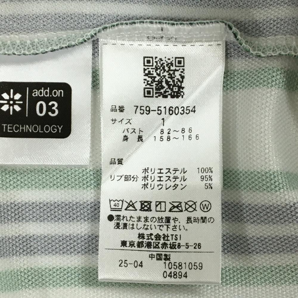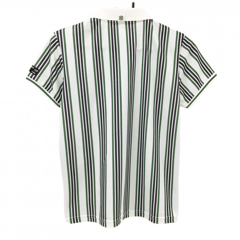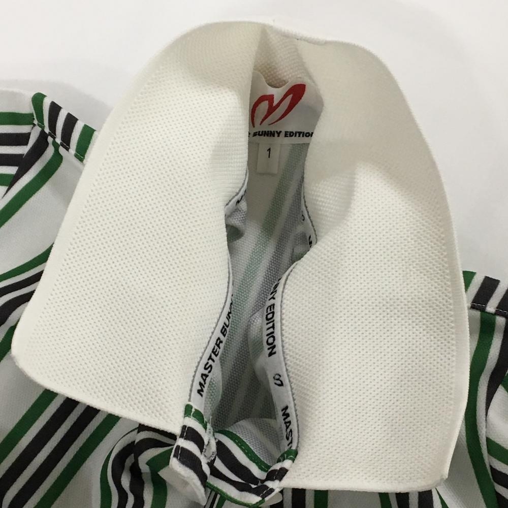 【美品】マスターバニー 半袖ポロシャツ 白×グリーン×黒 ストライプ レディース 1(M) ゴルフウェア 2025年モデル MASTER BUNNY EDITION