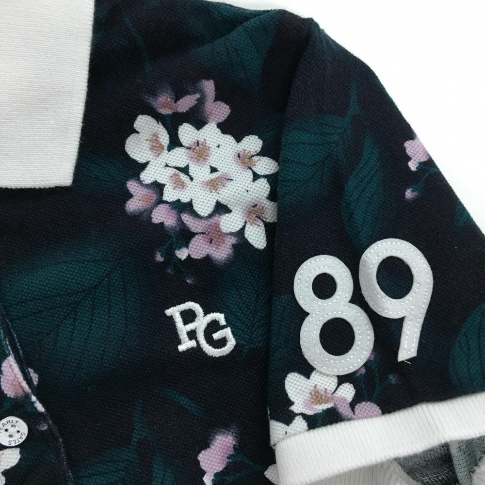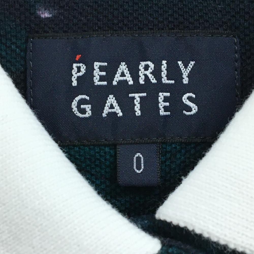 【美品】パーリーゲイツ 半袖ポロシャツ ネイビー×グリーン×ピンク 花柄 レディース 0(S) ゴルフウェア PEARLY GATES
