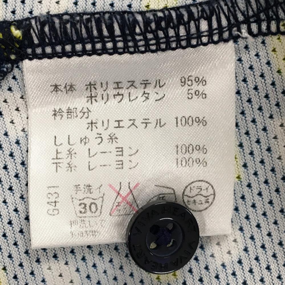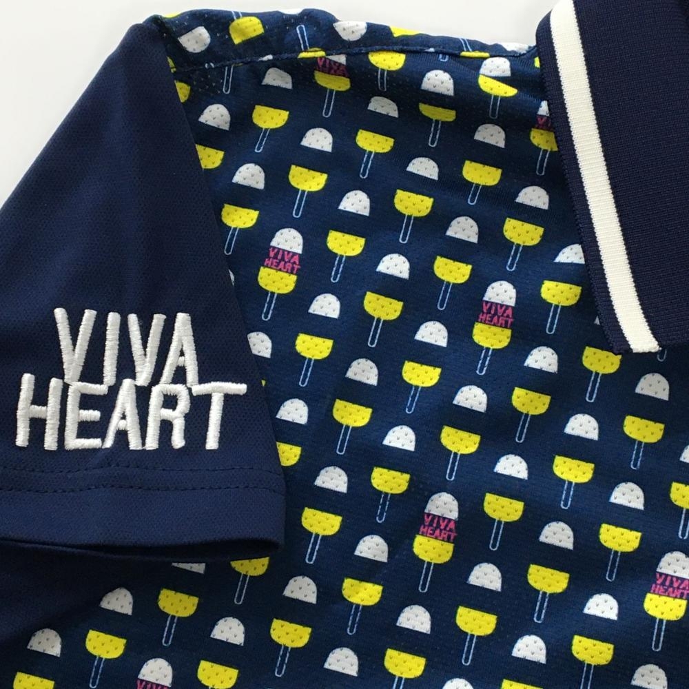 【超美品】ビバハート 半袖ポロシャツ ネイビー×白 身頃総柄 袖ロゴ刺しゅう レディース 42(L) ゴルフウェア VIVA HEART