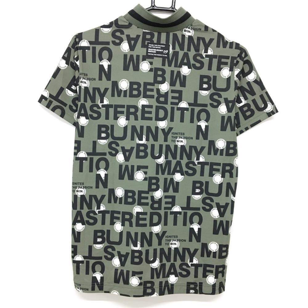 【超美品】マスターバニー 半袖ハイネックシャツ カーキ×黒 ロゴ総柄 レディース 2(L) ゴルフウェア 2024年モデル MASTER BUNNY EDITION