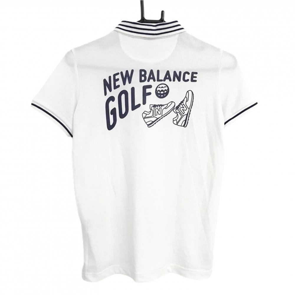 ニューバランスゴルフ 半袖ポロシャツ 白×ネイビー 襟ボーダー レディース 0(S) ゴルフウェア New Balance