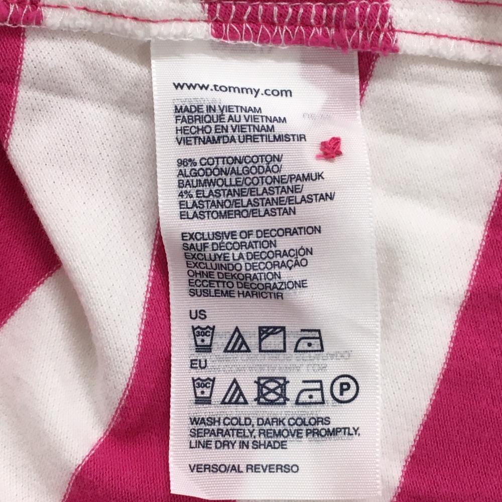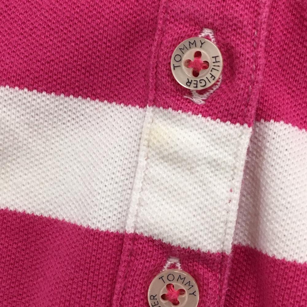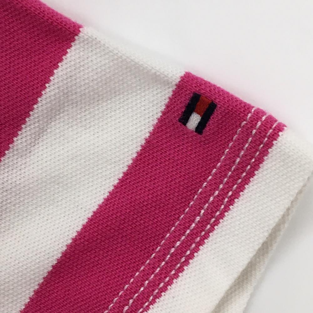 トミーヒルフィガーゴルフ 半袖ポロシャツ 白×ピンク ボーダー ロゴ刺しゅう レディース M ゴルフウェア Tommy Hilfiger Golf