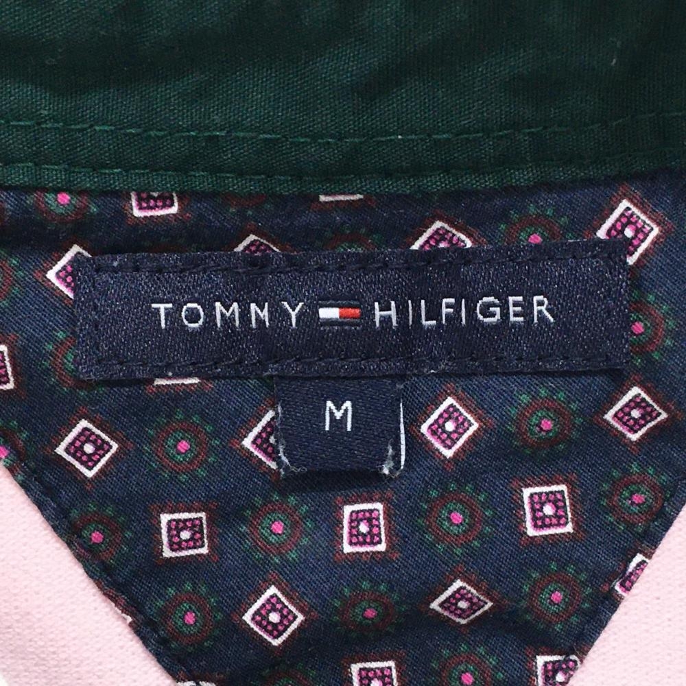 【美品】トミーヒルフィガーゴルフ 半袖ポロシャツ ライトピンク×グリーン ボーダー レディース M ゴルフウェア Tommy Hilfiger Golf