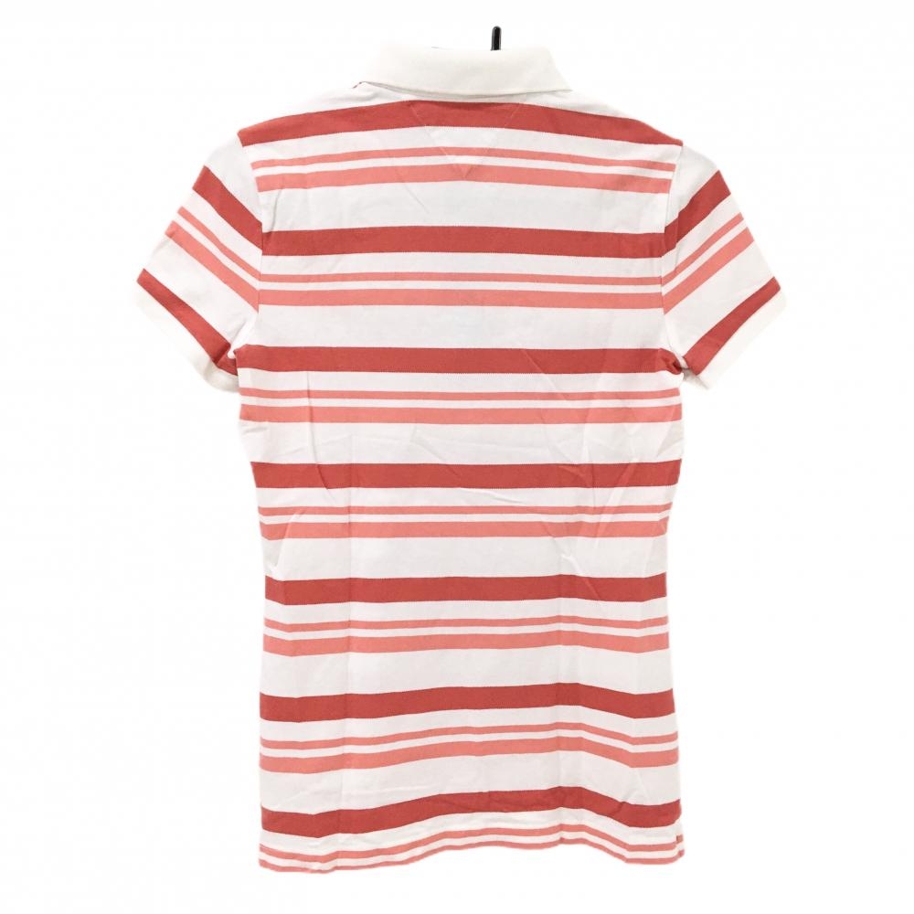 【美品】トミーヒルフィガーゴルフ 半袖ポロシャツ 白×レッド ボーダー ロゴ刺しゅう レディース S/P ゴルフウェア Tommy Hilfiger Golf
