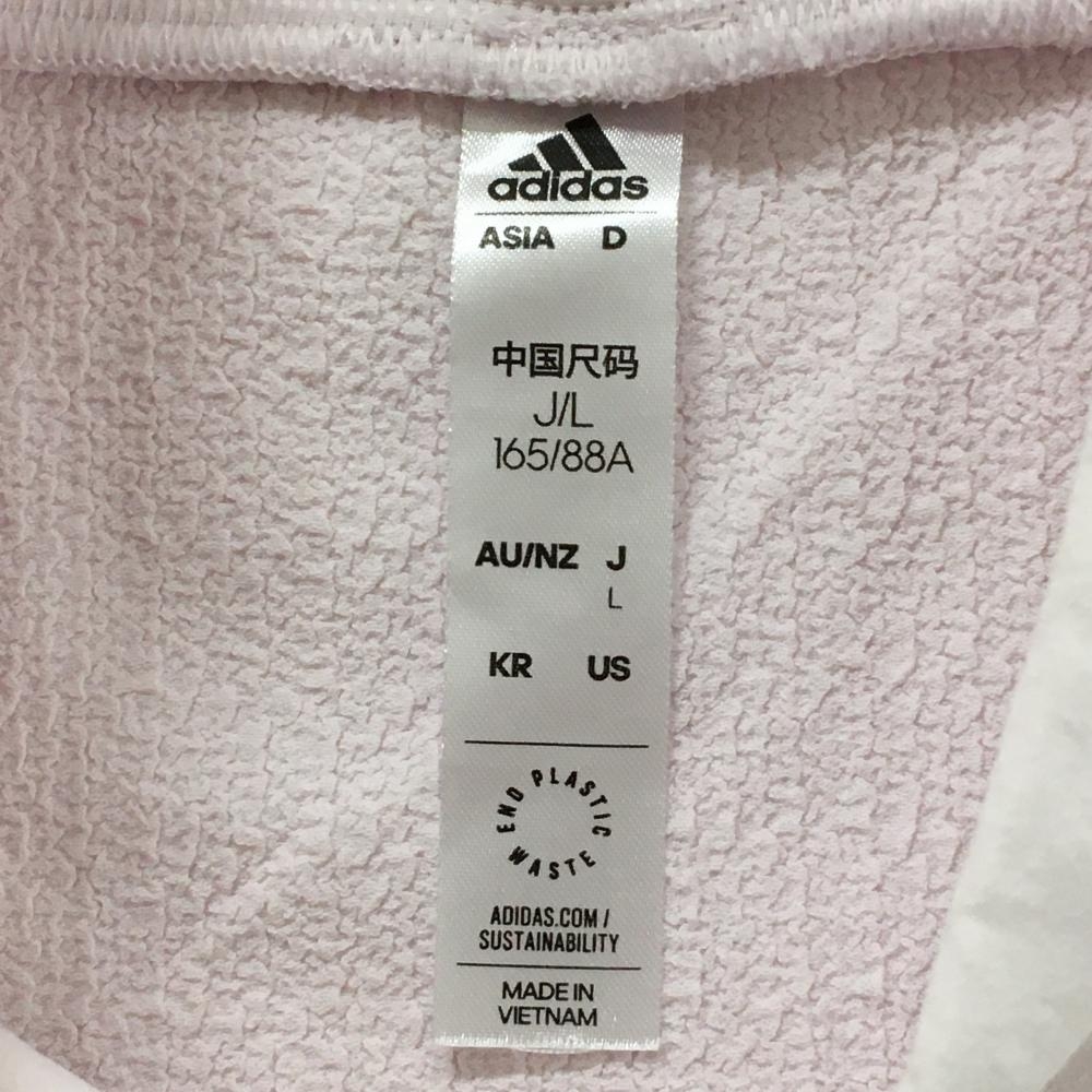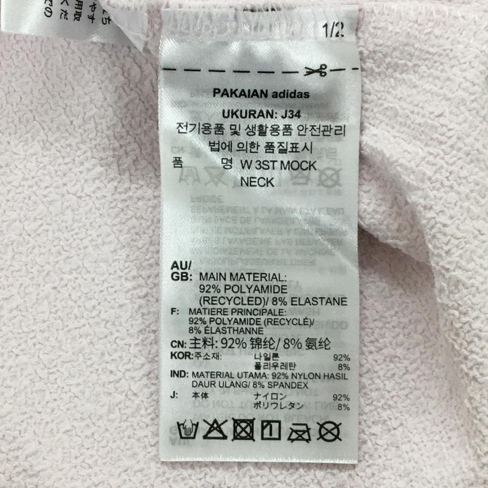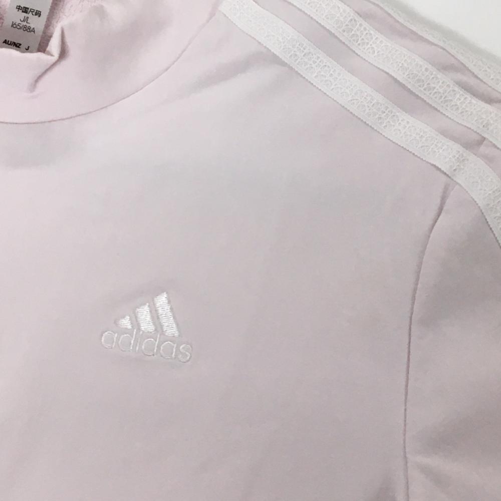 【美品】アディダス 半袖ハイネックシャツ ライトピンク×白 袖3ライン レディース L ゴルフウェア adidas