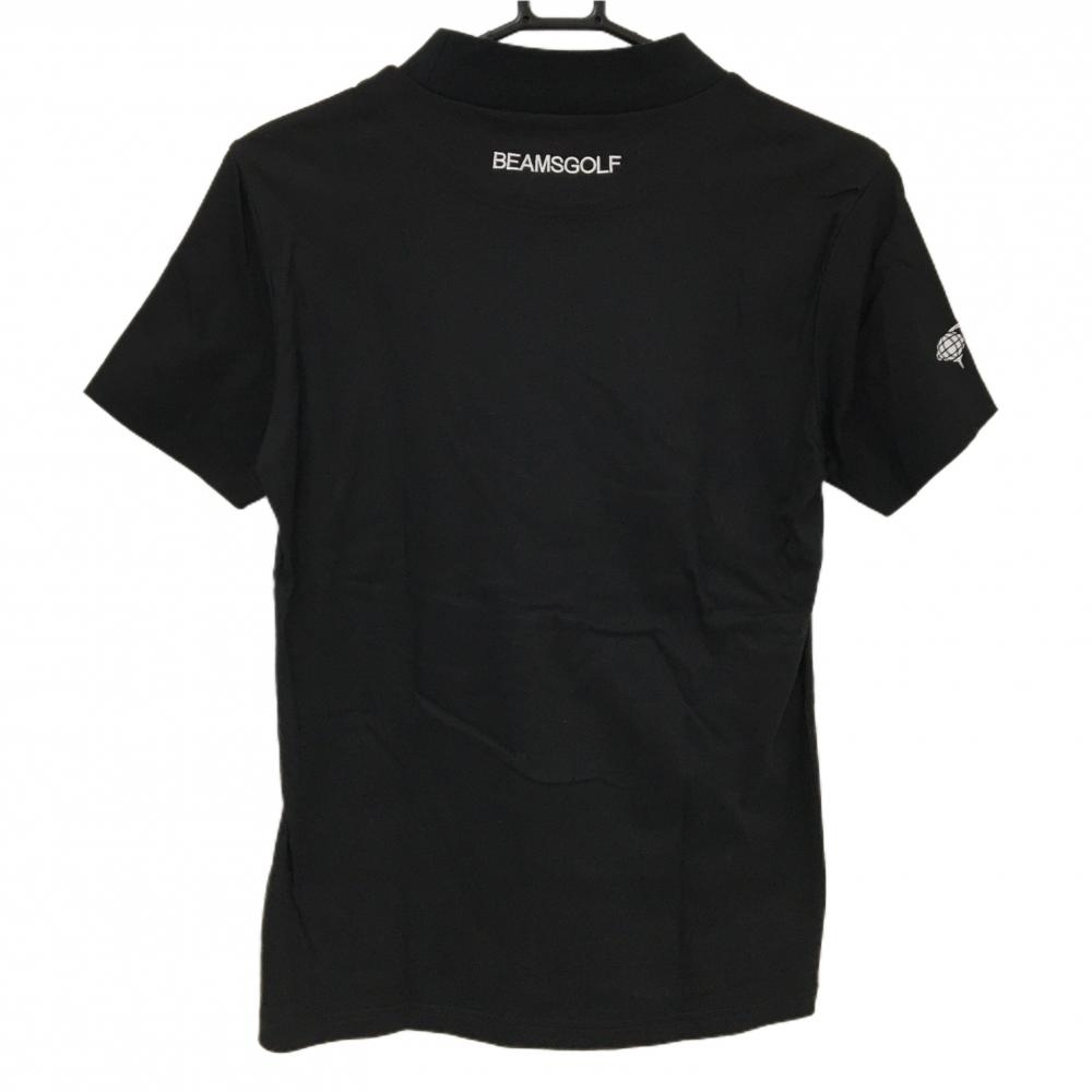 【美品】ビームスゴルフ 半袖ハイネックシャツ 黒×ライトブルー ロゴ 異素材切替 レディース L ゴルフウェア BEAMS GOLF