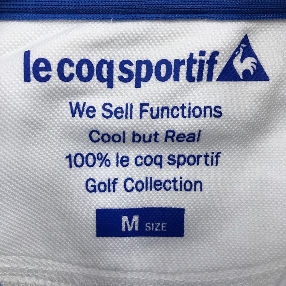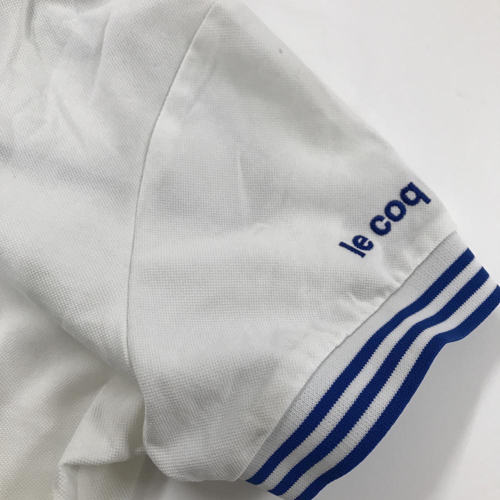 ルコックゴルフ 半袖ポロシャツ 白×ブルー 襟・袖口ボーダー ロゴ刺しゅう レディース M ゴルフウェア le coq sportif