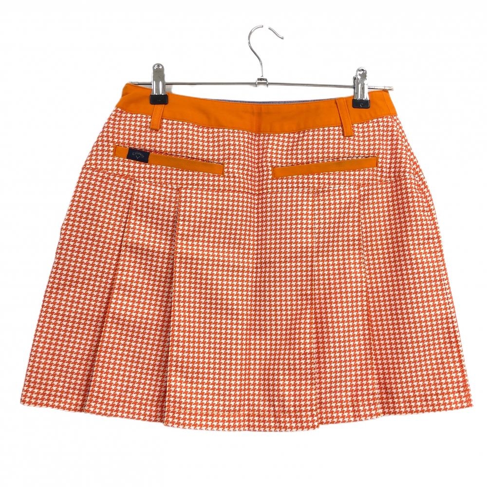 【美品】キャロウェイ プリーツスカート オレンジ×白 千鳥格子 レディース L ゴルフウェア Callaway