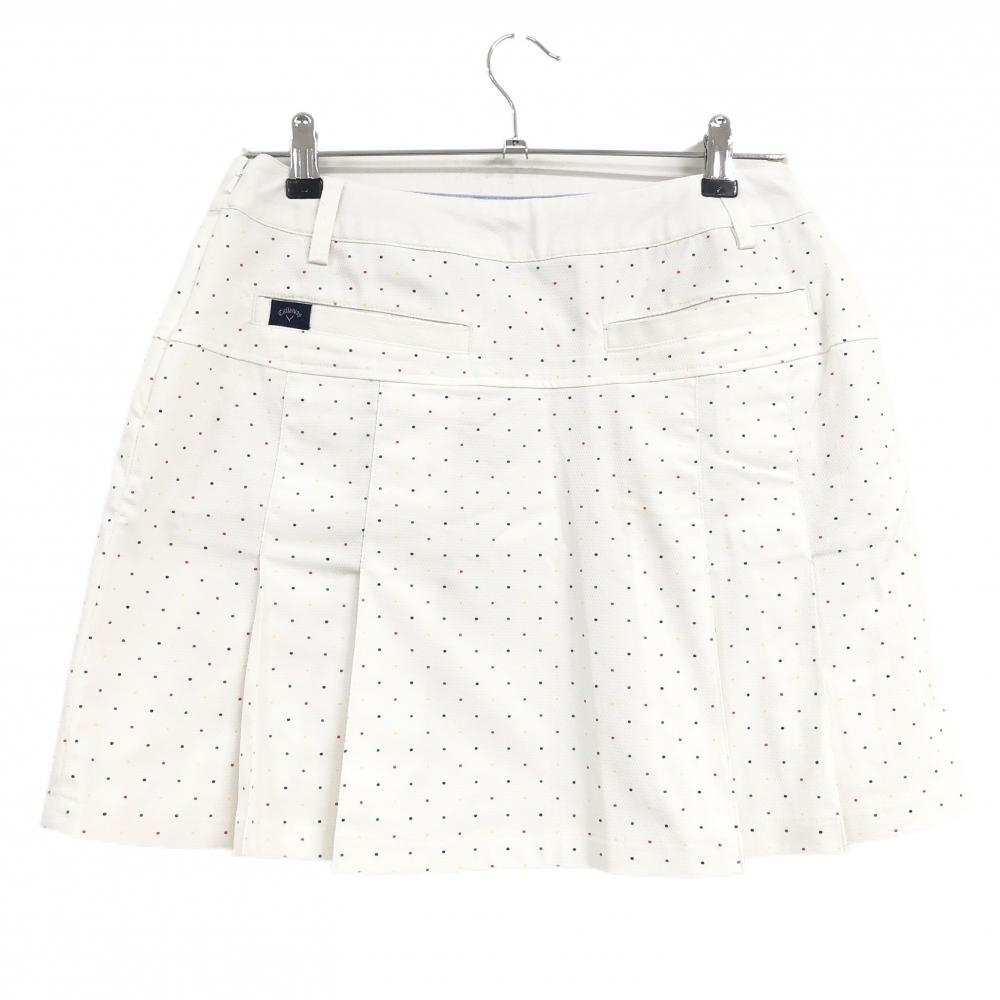 キャロウェイ プリーツスカート 白×マルチカラー ドット ウエスト汚れ レディース L ゴルフウェア Callaway