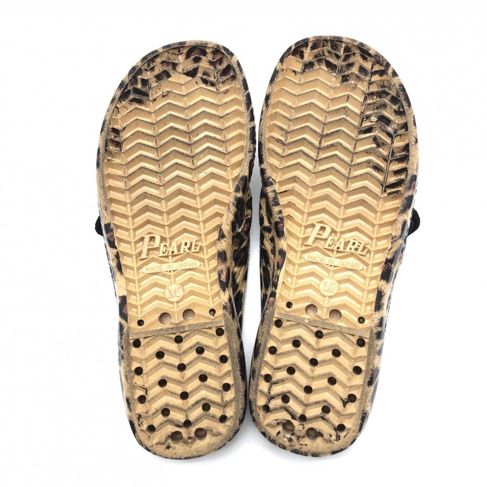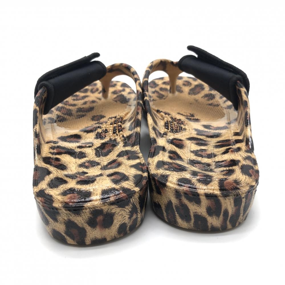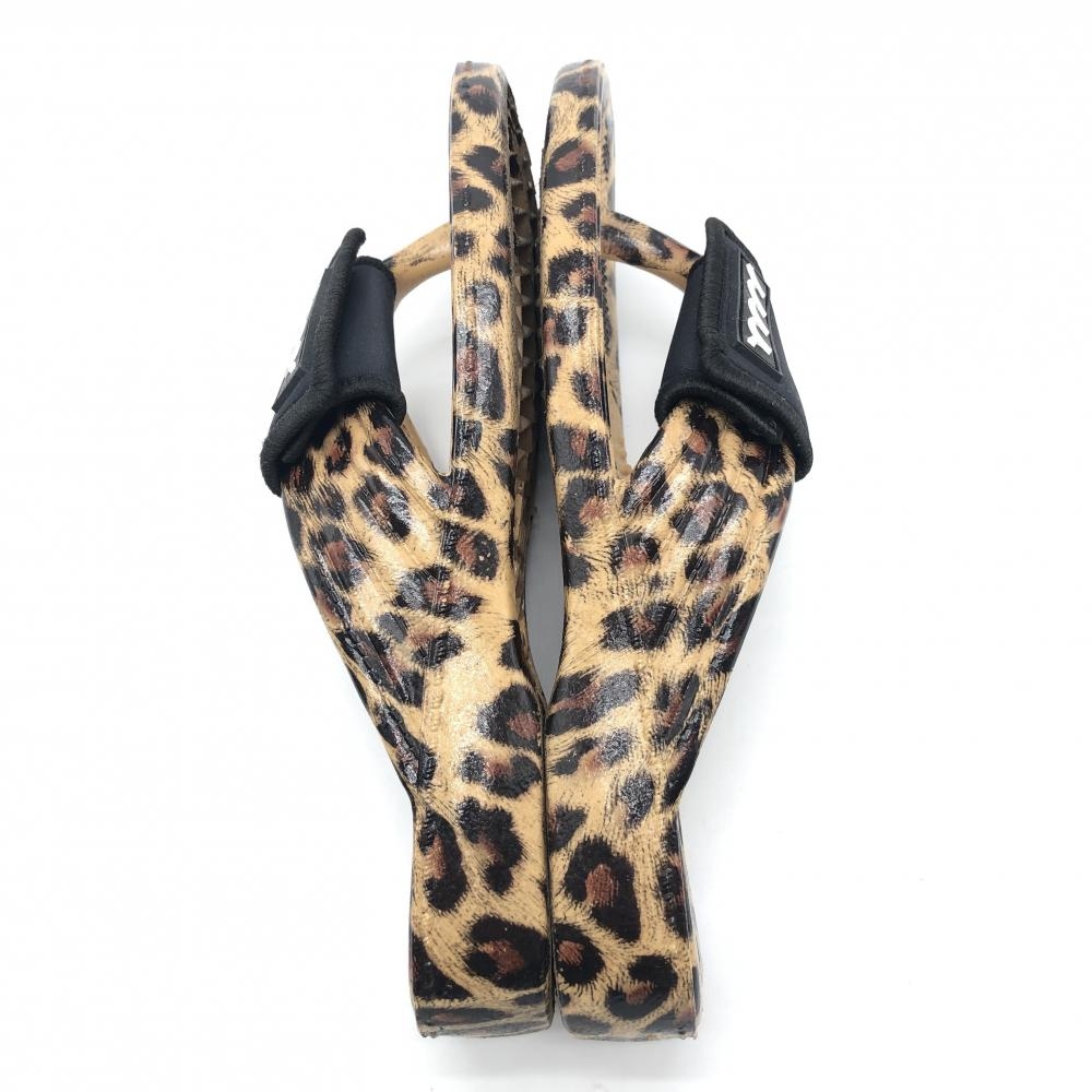 【美品】ムータマリン ビーチサンダル ベージュ×ブラウン レオパード 収納袋付き レディース M(約24.5) ゴルフウェア muta