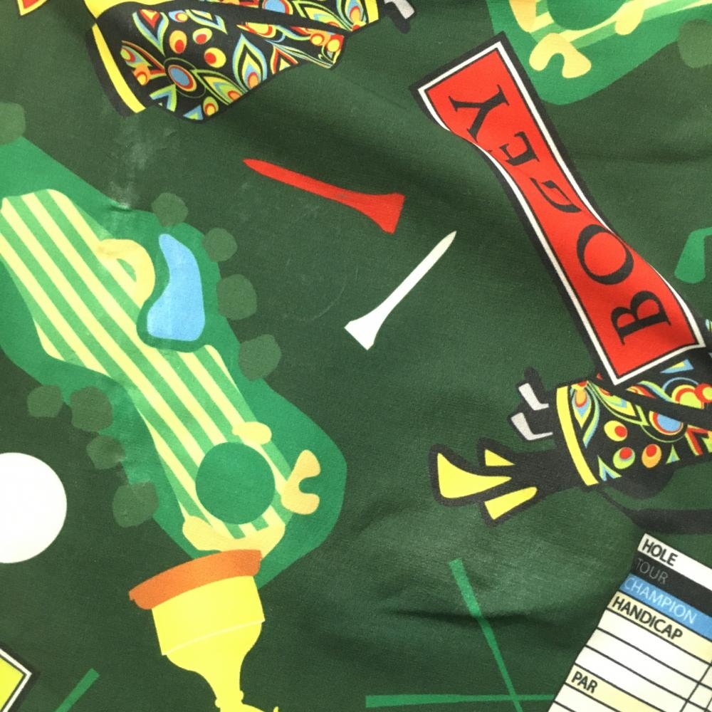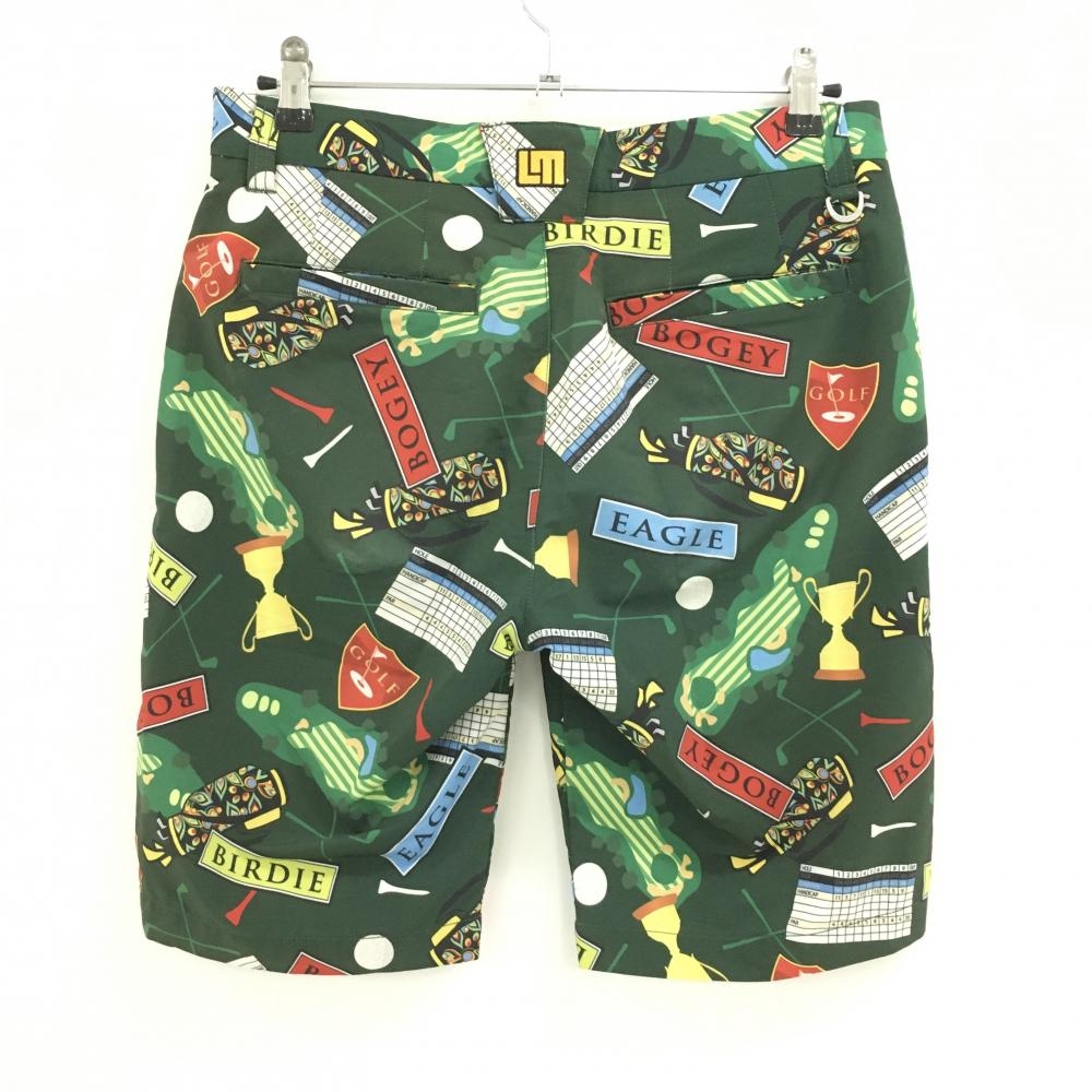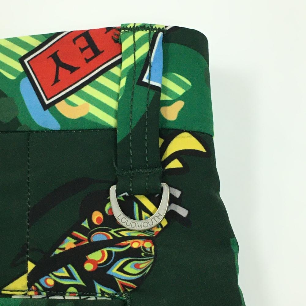 【美品】ラウドマウス ハーフパンツ グリーン×レッド×マルチカラー 総柄 キャディバッグ ゴルフティー メンズ M ゴルフウェア LOUDMOUTH