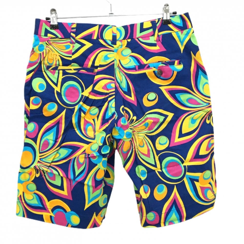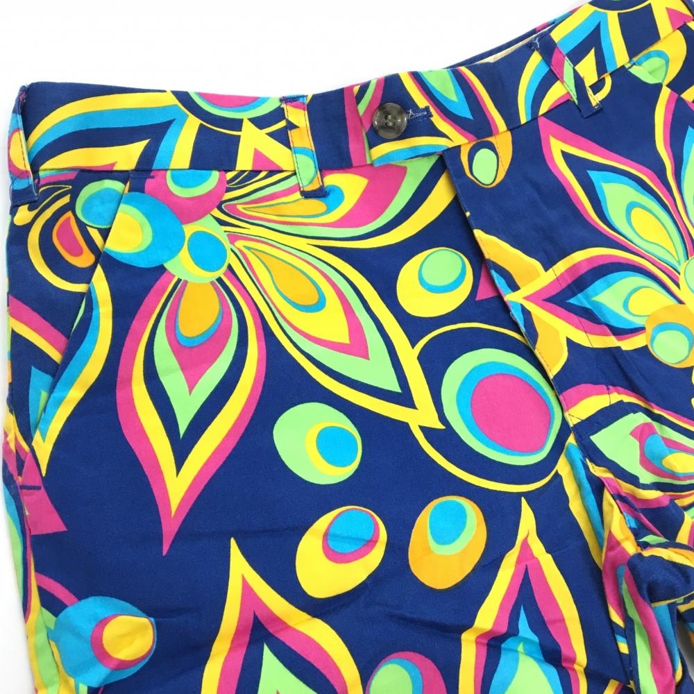 【超美品】ラウドマウス ハーフパンツ ダークブルー×マルチカラー 総柄 シャガデリックブルー メンズ 32 ゴルフウェア LOUDMOUTH
