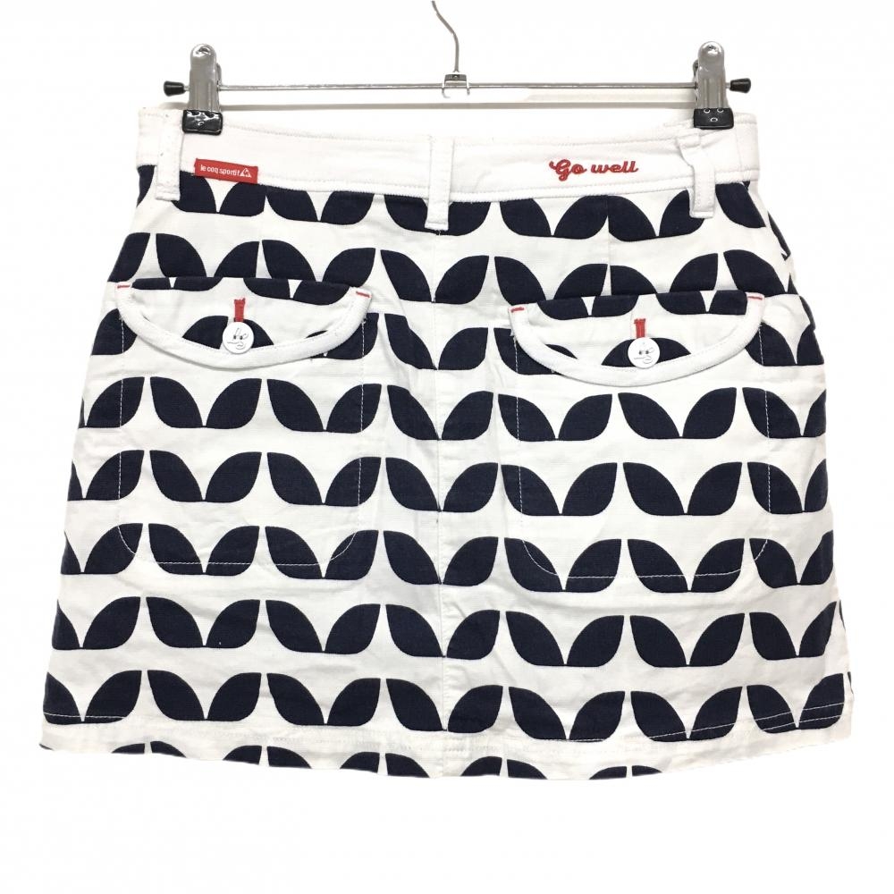 ルコックゴルフ スカート 白×ダークネイビー 総柄 てんとう虫刺しゅう 内側インナーパンツ レディース 9 ゴルフウェア le coq sportif