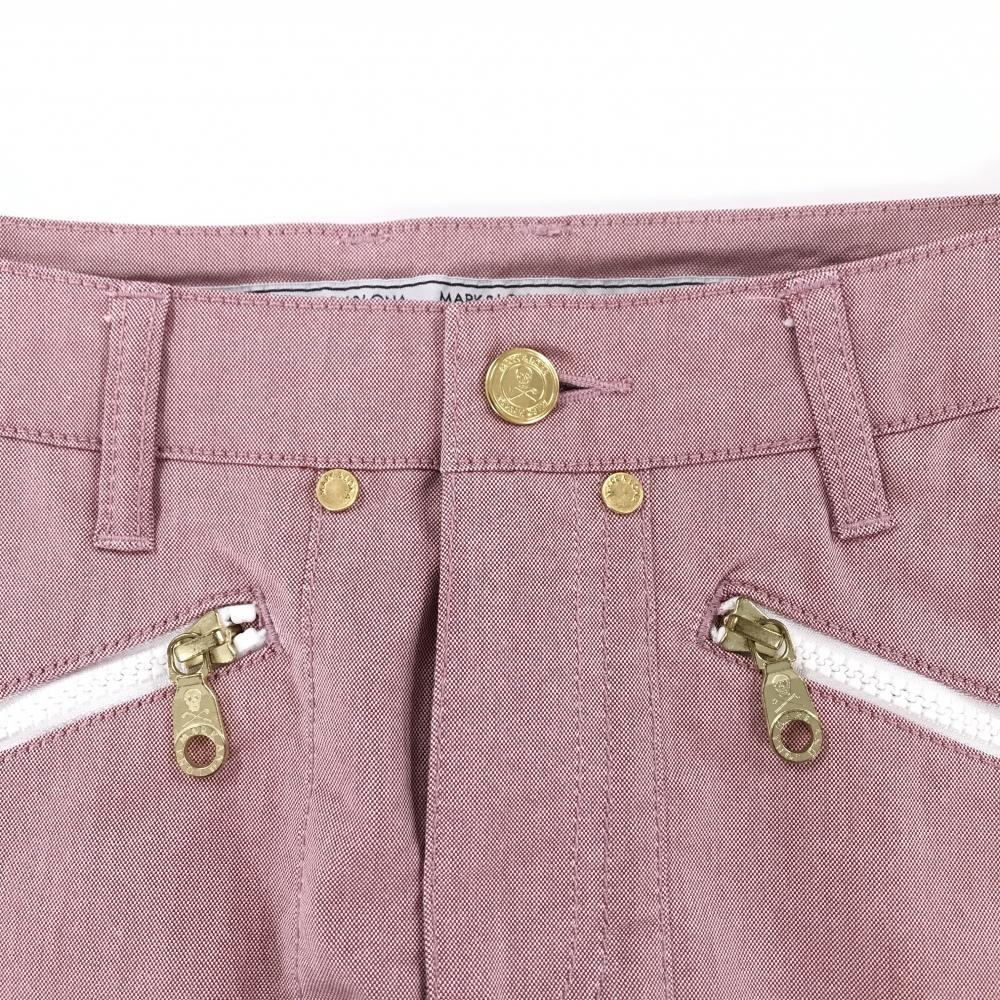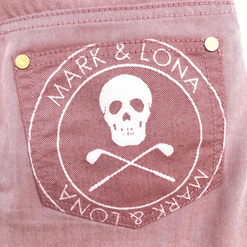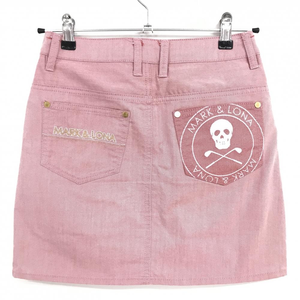 【超美品】マークアンドロナ スカート 杢レッド ジップポケット スカル レディース S ゴルフウェア MARK&LONA