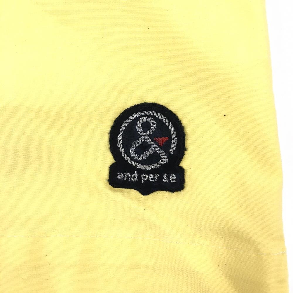 【超美品】アンパスィ スカート イエロー フロントボタン ロゴワッペン ラメ刺しゅう ストレッチ レディース M ゴルフウェア and per se