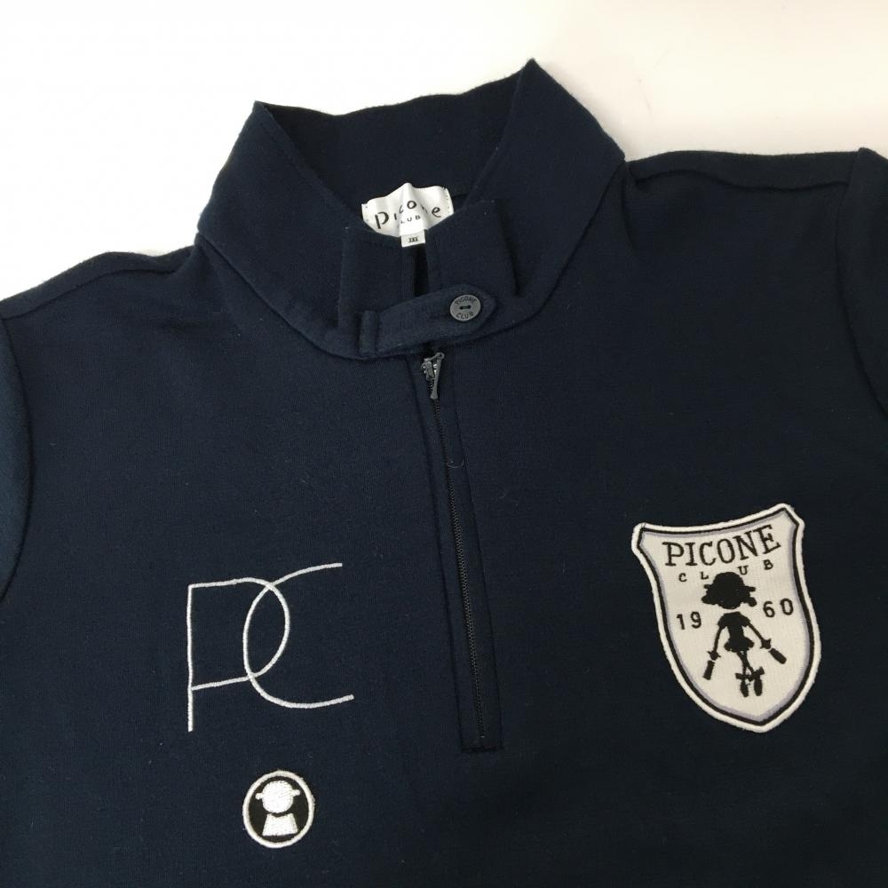 【美品】ピッコーネ 半袖ワンピース ネイビー×白 胸ロゴ ミニ丈 ハーフジップ レディース III(XL) ゴルフウェア PICONE