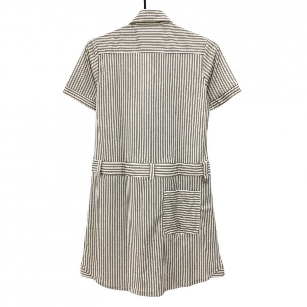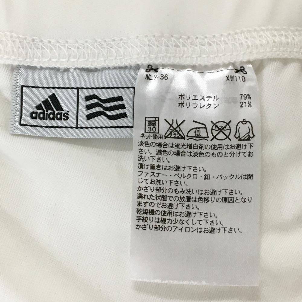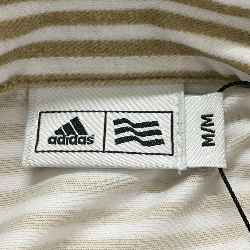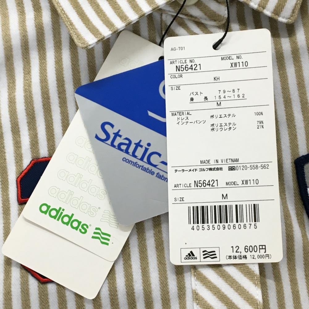 【新品】アディダス 半袖ポロワンピース 白×ベージュ ストライプ インナーパンツ付 レディース M/M ゴルフウェア adidas