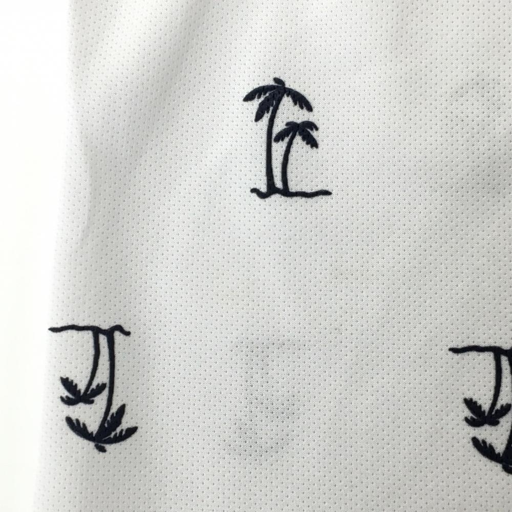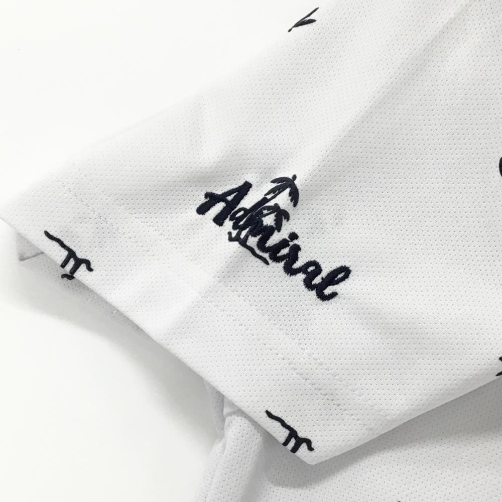 【超美品】アドミラル 半袖ポロシャツ 白×ダークネイビー ヤシの木総柄 ロゴ刺しゅう レディース LL ゴルフウェア Admiral
