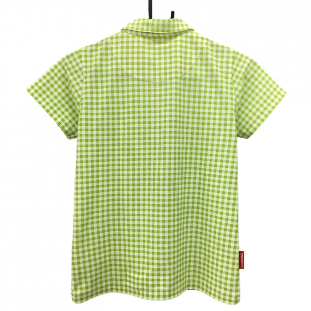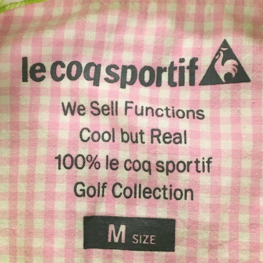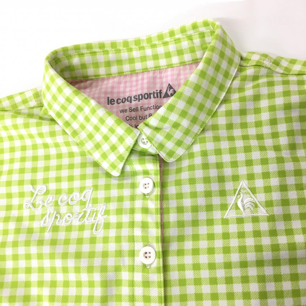 【超美品】ルコックゴルフ 半袖ポロシャツ イエローグリーン×白 ギンガムチェック レディース M ゴルフウェア le coq sportif