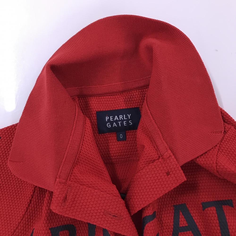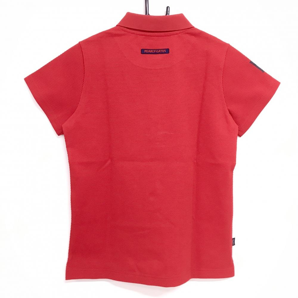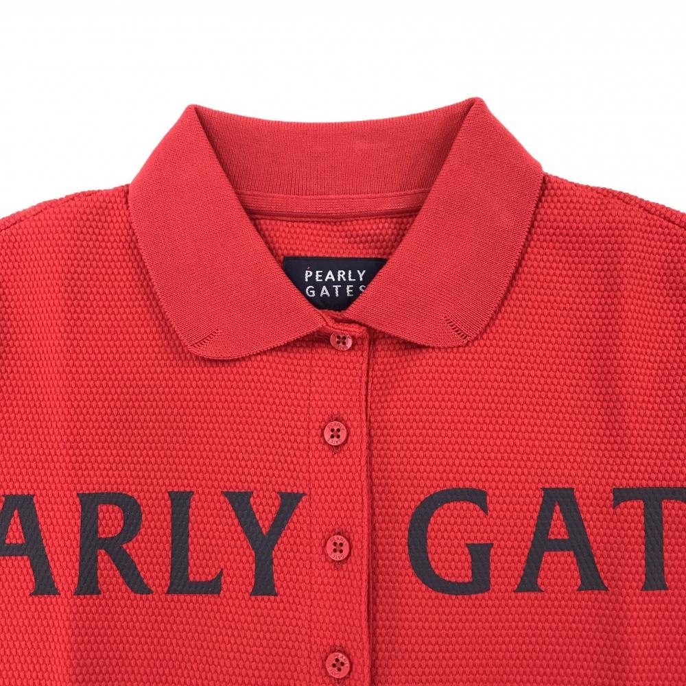 【美品】パーリーゲイツ 半袖ポロシャツ レッド×黒 ビッグロゴ 織生地 レディース 0(S) ゴルフウェア PEARLY GATES